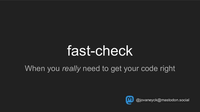 and this is a simple specification! I don’t recommend writing these for all your code – only the really important stuff.” “Property-based tests are best combined with example-based tests. Examples help you start organizing your thoughts, and they’re easier for future-you to read and understand when you come back to this code later. Humans think in examples. Programs don’t extrapolate. Property-based thinking and property-based testing can bridge between us and the computer. Math, it’s a tool.”