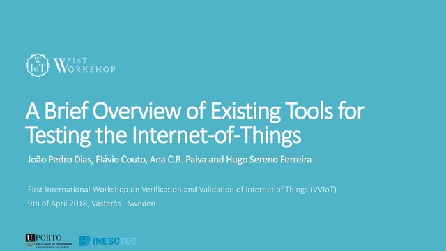 João Pedro Dias, Flávio Couto, Ana C.R. Paiva and Hugo Sereno Ferreira First International Workshop on Verification and Validation of Internet of Things (VVIoT) 9th of April 2018, Västerås - Sweden