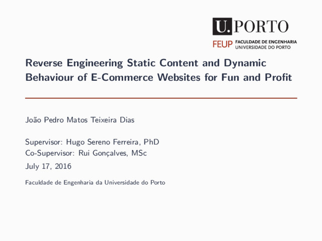 for Fun and Profit Jo˜ ao Pedro Matos Teixeira Dias Supervisor: Hugo Sereno Ferreira, PhD Co-Supervisor: Rui Gon¸ calves, MSc July 17, 2016 Faculdade de Engenharia da Universidade do Porto