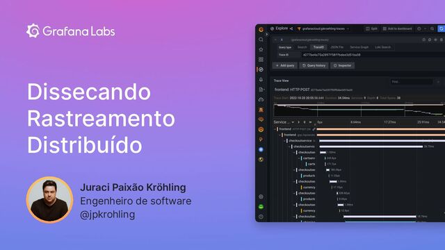 Nessa apresentação, Juraci Paixão Kröhling vai falar sobre a história, as diversas partes que compõe uma solução de rastreamento distribuído e como elas se relacionam: dapper, Zipkin, Jaeger, propagação de contexto, bagagem, W3C Trace Context e muito mais!