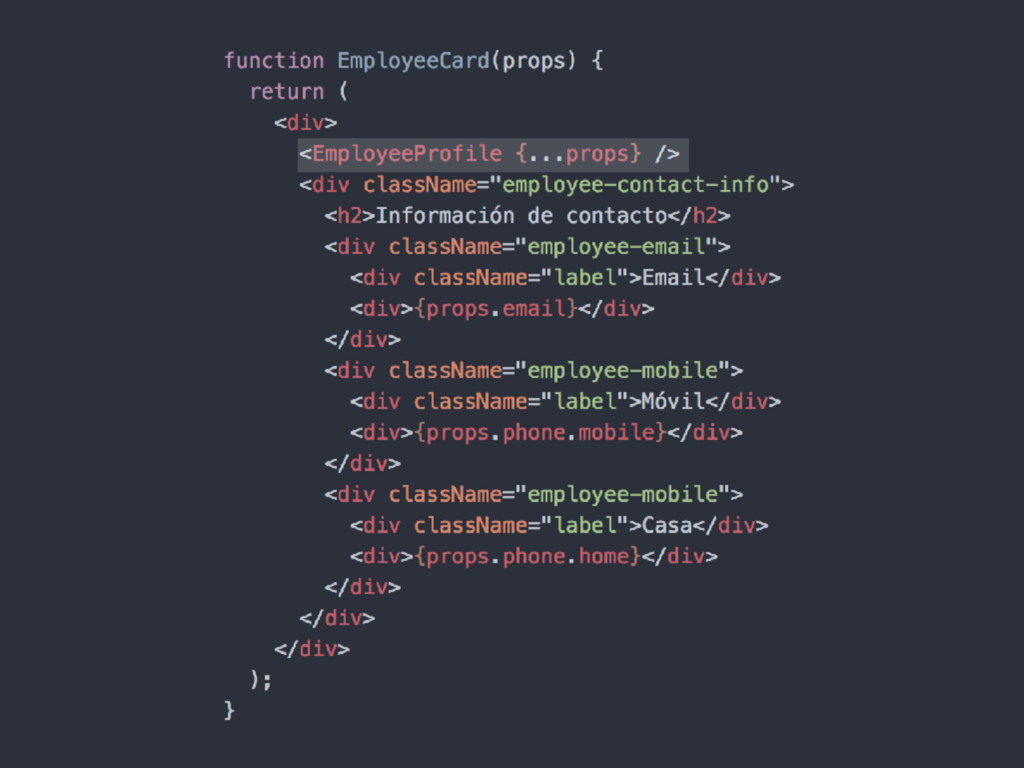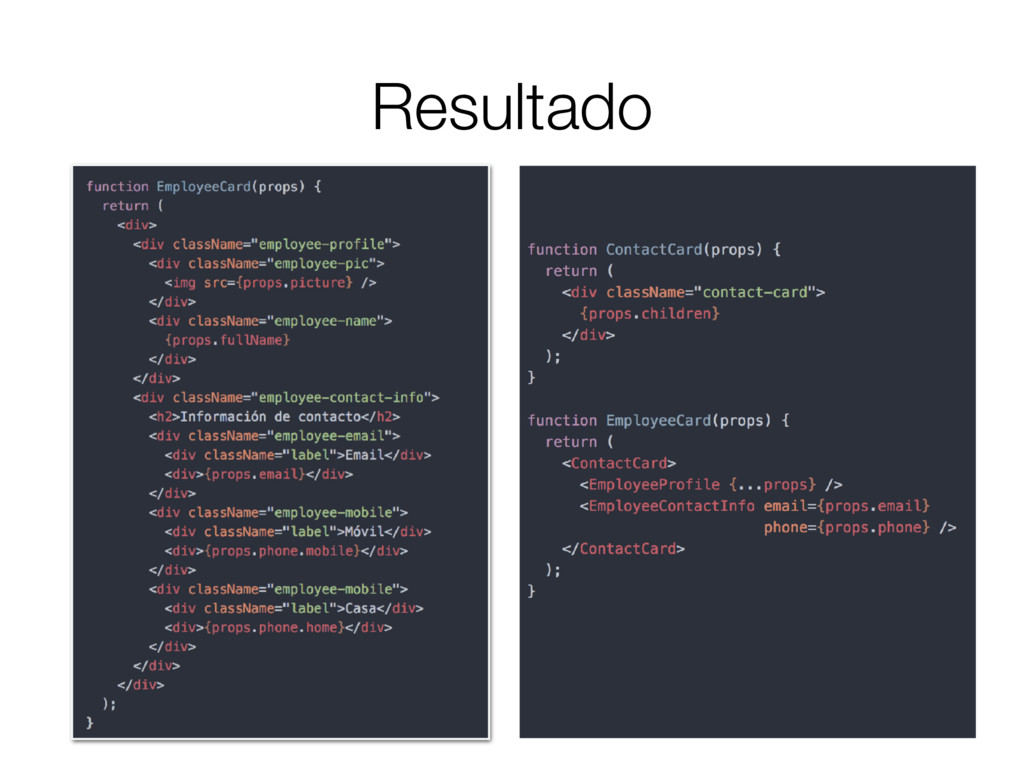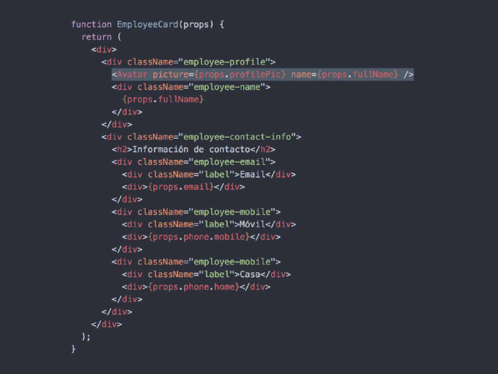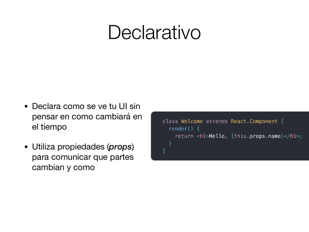 en como cambiará en el tiempo • Utiliza propiedades (props) para comunicar que partes cambian y como