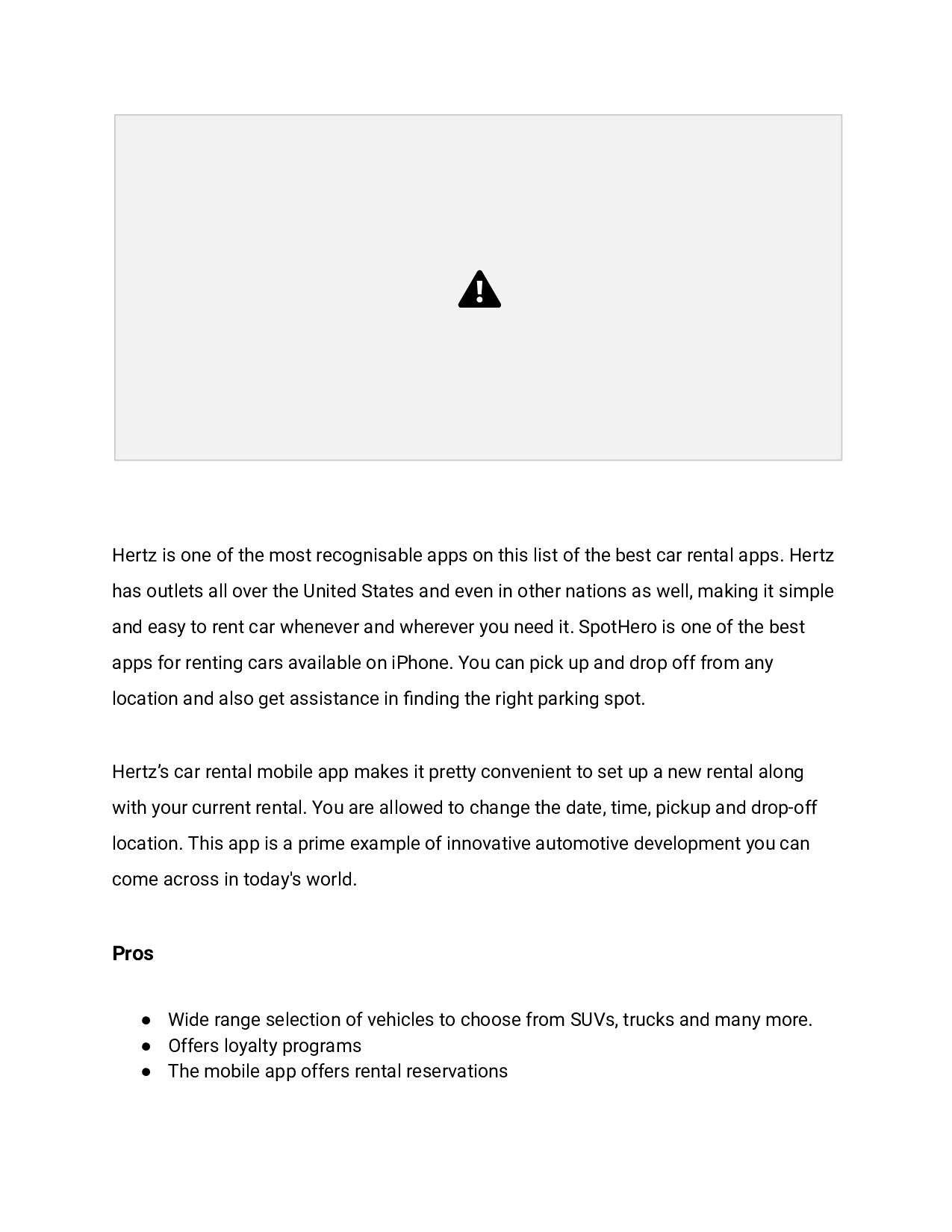 list of the best car rental apps. Hertz has outlets all over the United States and even in other nations as well, making it simple and easy to rent car whenever and wherever you need it. SpotHero is one of the best apps for renting cars available on iPhone. You can pick up and drop off from any location and also get assistance in finding the right parking spot. Hertz’s car rental mobile app makes it pretty convenient to set up a new rental along with your current rental. You are allowed to change the date, time, pickup and drop-off location. This app is a prime example of innovative automotive development you can come across in today's world. Pros • Wide range selection of vehicles to choose from SUVs, trucks and many more. • Offers loyalty programs • The mobile app offers rental reservations