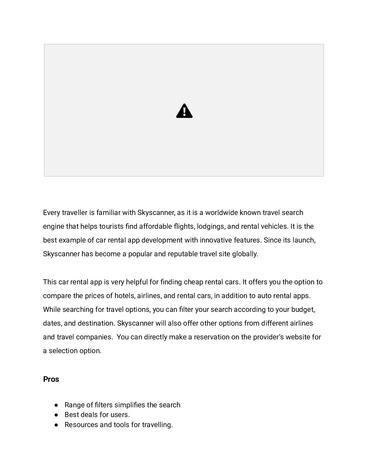 worldwide known travel search engine that helps tourists find affordable flights, lodgings, and rental vehicles. It is the best example of car rental app development with innovative features. Since its launch, Skyscanner has become a popular and reputable travel site globally. This car rental app is very helpful for finding cheap rental cars. It offers you the option to compare the prices of hotels, airlines, and rental cars, in addition to auto rental apps. While searching for travel options, you can filter your search according to your budget, dates, and destination. Skyscanner will also offer other options from different airlines and travel companies. You can directly make a reservation on the provider’s website for a selection option. Pros • Range of filters simplifies the search • Best deals for users. • Resources and tools for travelling.