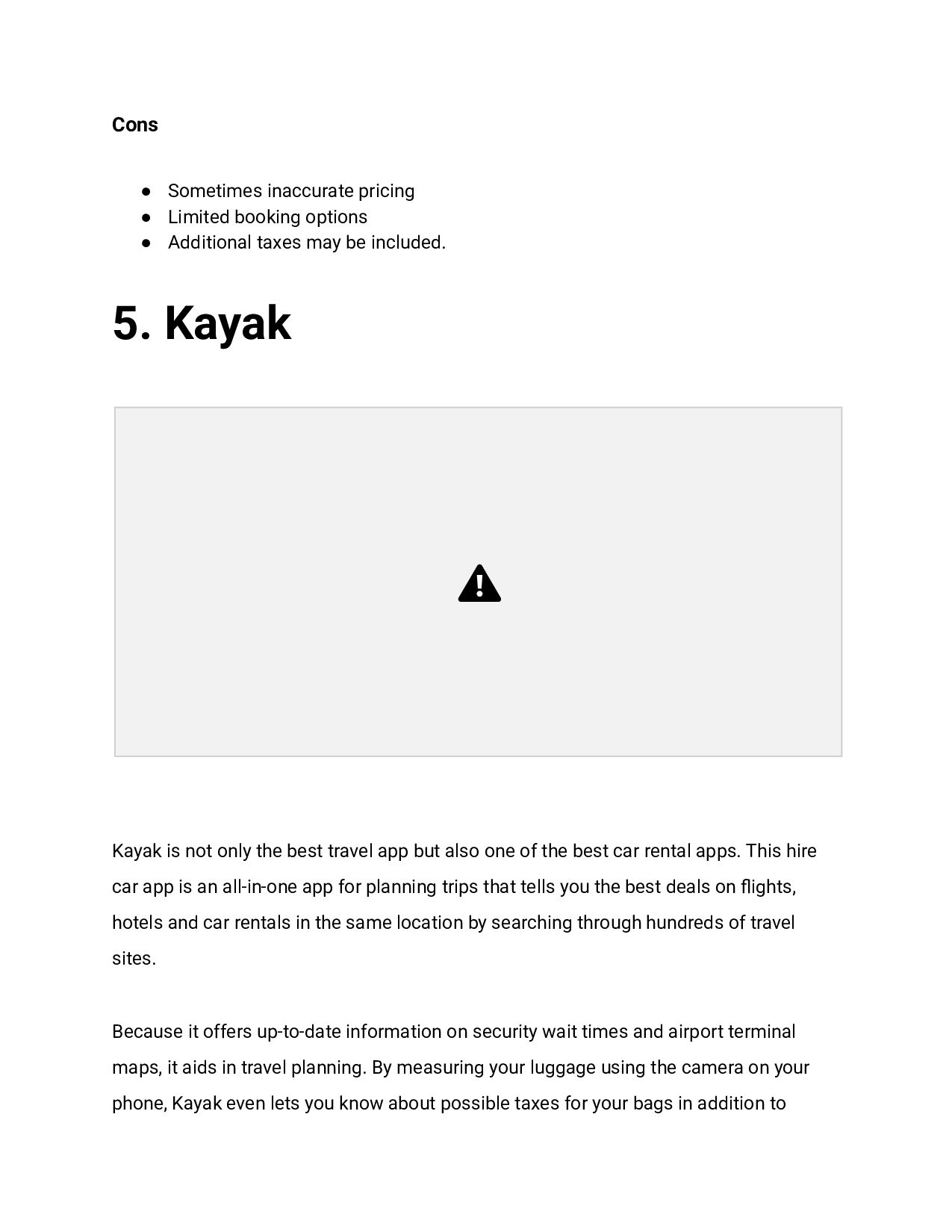 Additional taxes may be included. 5. Kayak Kayak is not only the best travel app but also one of the best car rental apps. This hire car app is an all-in-one app for planning trips that tells you the best deals on flights, hotels and car rentals in the same location by searching through hundreds of travel sites. Because it offers up-to-date information on security wait times and airport terminal maps, it aids in travel planning. By measuring your luggage using the camera on your phone, Kayak even lets you know about possible taxes for your bags in addition to