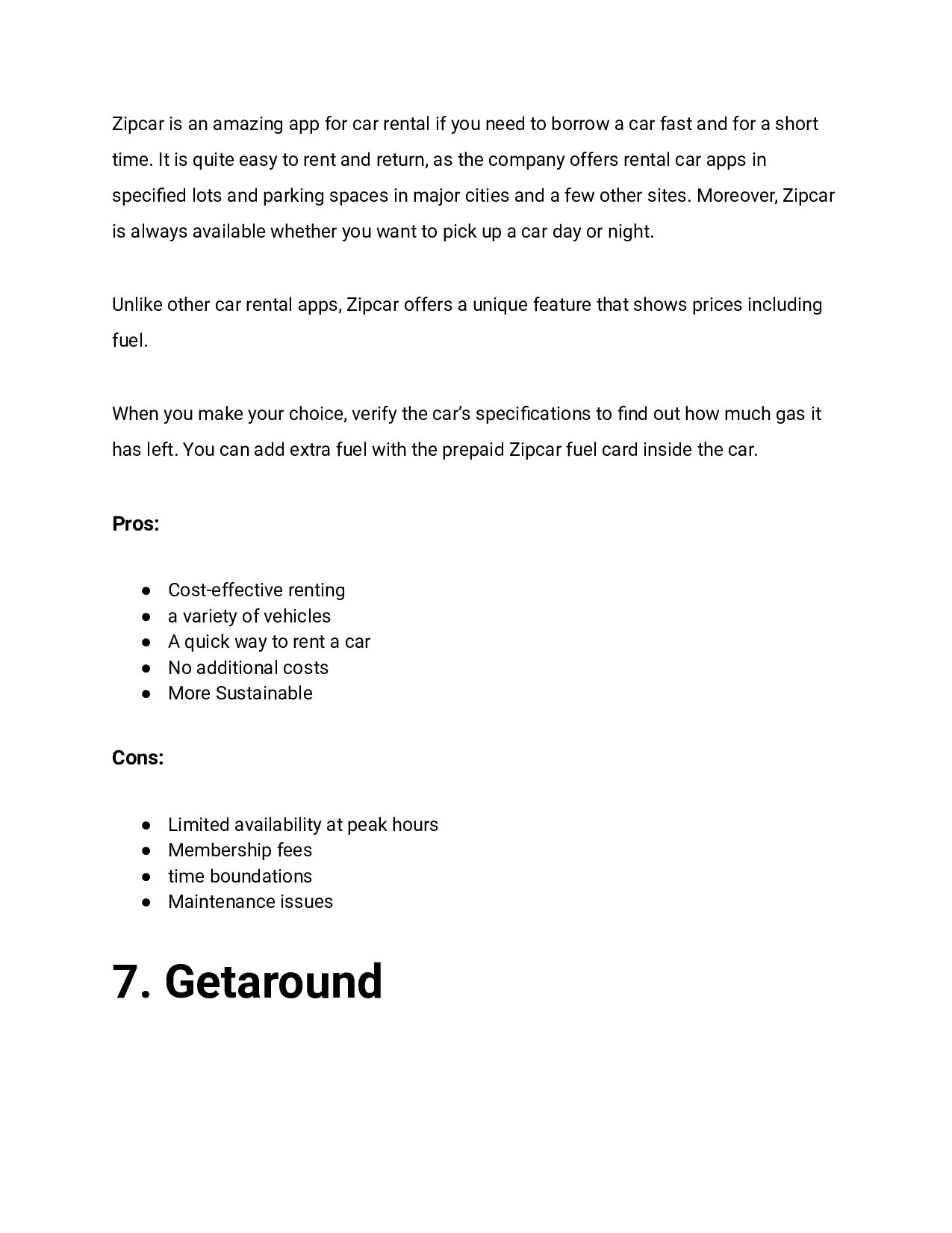 need to borrow a car fast and for a short time. It is quite easy to rent and return, as the company offers rental car apps in specified lots and parking spaces in major cities and a few other sites. Moreover, Zipcar is always available whether you want to pick up a car day or night. Unlike other car rental apps, Zipcar offers a unique feature that shows prices including fuel. When you make your choice, verify the car’s specifications to find out how much gas it has left. You can add extra fuel with the prepaid Zipcar fuel card inside the car. Pros: • Cost-effective renting • a variety of vehicles • A quick way to rent a car • No additional costs • More Sustainable Cons: • Limited availability at peak hours • Membership fees • time boundations • Maintenance issues 7. Getaround
