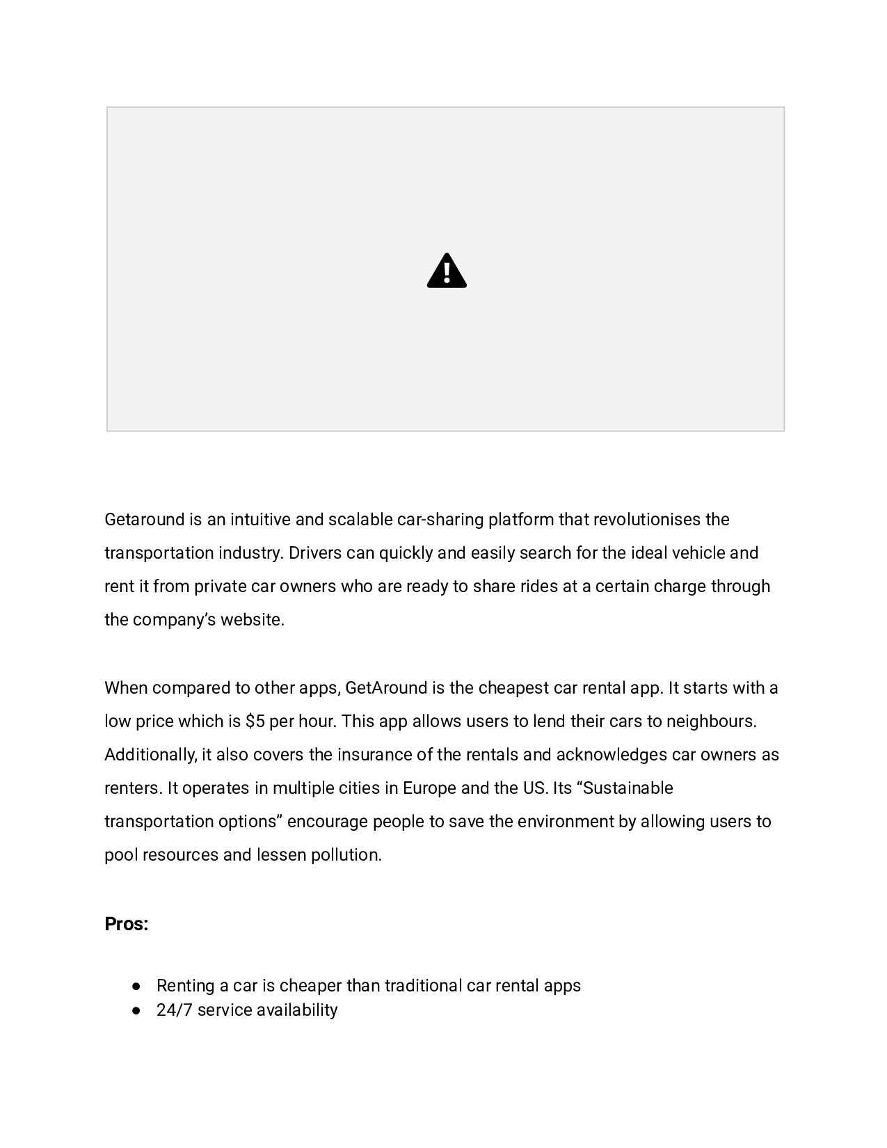the transportation industry. Drivers can quickly and easily search for the ideal vehicle and rent it from private car owners who are ready to share rides at a certain charge through the company’s website. When compared to other apps, GetAround is the cheapest car rental app. It starts with a low price which is $5 per hour. This app allows users to lend their cars to neighbours. Additionally, it also covers the insurance of the rentals and acknowledges car owners as renters. It operates in multiple cities in Europe and the US. Its “Sustainable transportation options” encourage people to save the environment by allowing users to pool resources and lessen pollution. Pros: • Renting a car is cheaper than traditional car rental apps • 24/7 service availability
