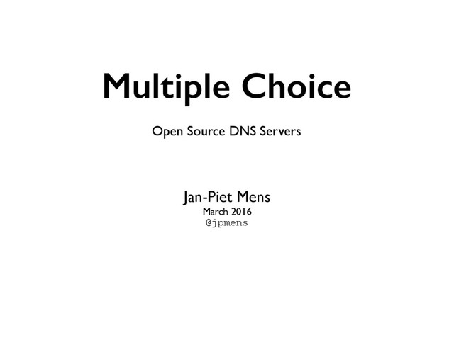 Multiple Choice Open Source DNS Servers Jan-Piet Mens March 2016