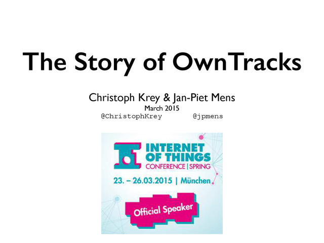 A talk given at the IoT Conference in Muenchen (Munich) in March 2015: a short walk through the story of our OwnTracks apps.