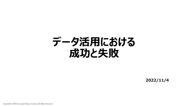 Copyright(c) 2022 East Japan Railway Company All Rights Reserved. データ活用における