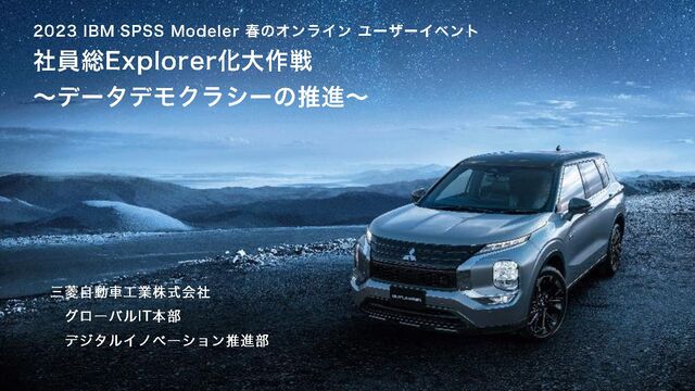 2023/5/19に開催されたSPSS 春のオンラインユーザーイベントのご講演 三菱自動車工業株式会社 五安城 貴博様、伴 俊広 様 「社員総Explorer化大作戦 ~データデモクラシーの推進~」 のスライド資料(公開版)です。