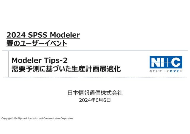 日本情報通信株式会社 2024年6月6日 2024 SPSS Modeler 春のユーザーイベント