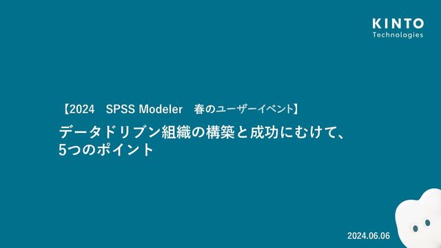 2024-06-06に開催されたSPSS 春のユーザーイベントのご講演 KINTOテクノロジーズ株式会社 西口浩司様 講演②データドリブン組織の構築と成功にむけて、5つのポイント のスライド資料(公開版)です