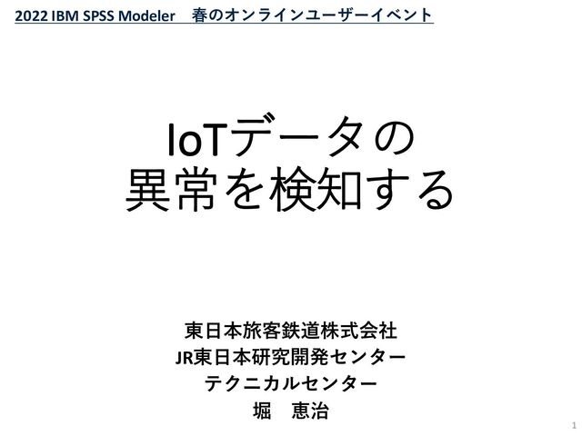 講演②異常を検知する 東日本旅客鉄道株式会社 堀 恵治 様_SPSSユーザーイベント2022春