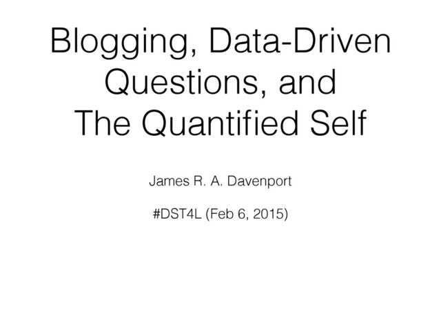 my blog, my varied interests • The two methods for coming up with blog posts • Visualization & it’s role in asking questions • What is the Quantified Self? • Hands-on examples of my analysis • Discussion: the role of a library for the modern data-driven researcher?