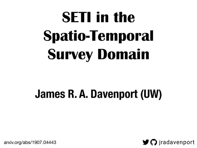 A short lunch talk I gave to the DIRAC Institute at the University of Washington's Department of Astronomy. Here I discuss the paper I recently submitted to the Astronomical Journal (AJ) on using modern wide field, time domain surveys to carry out a new generation of SETI or "Technosignature" work.