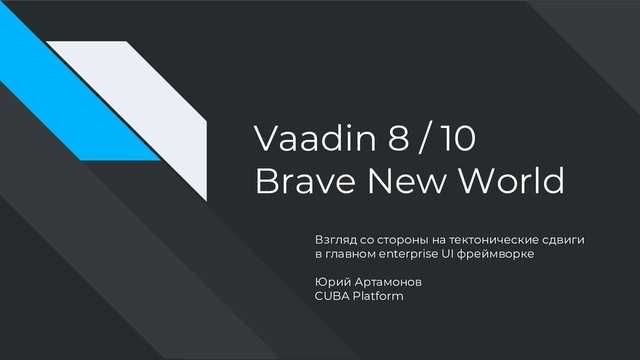 API Vaadin 8 и 10 принципиально отличается. • Аддоны для V8 не обновляются для V10 (а может это и не нужно?). Сходства: - Server-side API - Java - Data binding Замена для компонентов из V8: https://vaadin.com/docs/v10/flow/migration /5-components.html