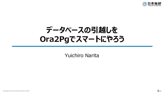 ④データ検証 技術統括部 DB-Architチーム ⚫ Oracle DB, PostgreSQL 両方に接続し、定義観点の検証、テーブル件数観点の検証、実データ観点の検証が可能 ⚫ デフォルトでは、両DBからテーブルごとに10,000件抽出し、差分が10件あると検証を停止する (confファイルから変更可能) 実データ観点の検証:データ移行前 ----------------------------------------------------------------- Data validation for table ITEM: 10 FAIL ----------------------------------------------------------------- ORACLEDB:ITEM:1:[1|8845|YEf9V6oRDxlLEeW9buiQtmd|48.72|KUBCwq4oS2coriginalivEWj0wDJf] POSTGRES:ITEM:1:[|||] ORACLEDB:ITEM:2:[2|6957|45FC1IfVGpqgK5gfInkQ|10.38|W8WxWdOHIaFZ2SXEKJmdg61Wipy6cZPyJFkW] POSTGRES:ITEM:2:[|||] ORACLEDB:ITEM:3:[3|638|adKlHN8tiTz4Jj|2.74|gjtIV8ntROEOFkCnwnCPyugzthp6Y3OoriginalH7g] POSTGRES:ITEM:3:[|||] ORACLEDB:ITEM:4:[4|2035|1GCOZ1erLzeWS0zLggP|1.59|jiDbFoewzyAKMXnuFYo5EHvrrg5nVEAH7KEgxQO] POSTGRES:ITEM:4:[|||] ORACLEDB:ITEM:5:[5|6642|bxMqQrXAc3ecRD31F4et3q|45.5|lAg4l4NnE3QVxyVr7JXBzOoUZQkDh9ydK57MXkCNoFs] POSTGRES:ITEM:5:[|||] ORACLEDB:ITEM:6:[6|948|daTVDtsNKYUiipK4hxTOS|89.82|y0oOFTtKlNgqVaksSw0m1Zl4UpAfaFNXBvQ51l8Dn2C2Bm] POSTGRES:ITEM:6:[|||] ORACLEDB:ITEM:7:[7|2368|S7SU7VcBCFTEYQGvwhH7|6.42|vN44p76fr9I7FuJa0ycnmDVDu7voIJHHGzVnrKFRu5KavQq] POSTGRES:ITEM:7:[|||] ORACLEDB:ITEM:8:[8|2845|mgrgBeWlyig7vIvqb|54.01|fxOgz1B8NO4V5hDE28ek0Qf34enZZjVXIvNM0zpFfC] POSTGRES:ITEM:8:[|||] ORACLEDB:ITEM:9:[9|9705|aso1L6kkYElgtdOVjsMry|30.07|lDDYBoWKlLgZKtQAE5ampg3RM3pkkaEUsdXhsl7OxavbHGuREy] POSTGRES:ITEM:9:[|||] ORACLEDB:ITEM:10:[10|2338|wKJ10VjPpap2yf|74.66|GnmrU6v7fMXdndRvWPd6SAZZ4eteSf2FmiD] POSTGRES:ITEM:10:[|||] データ移行後 Data validation for table ITEM: OK CREATE TABLE item ( i_id integer, i_im_id bigint, i_name varchar(24), i_price decimal(5,2), i_data varchar(50) ) ; 参考:ITEM表の定義 不一致