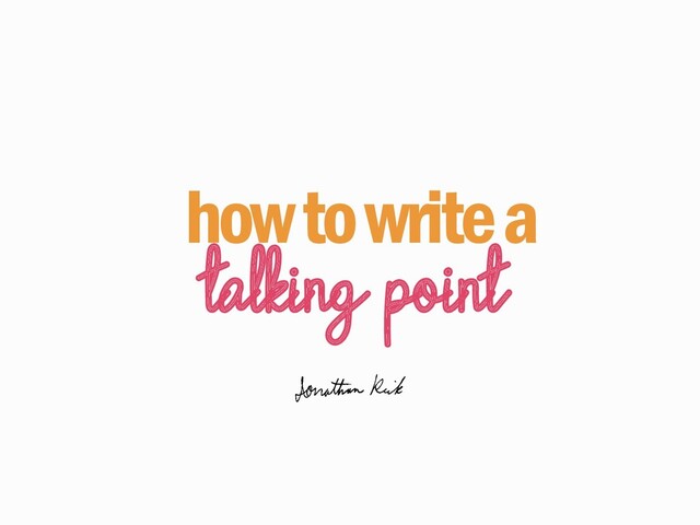 of things he might have in mind. Some people want a half-dozen words scribbled on page, others want key phrases and messaging, and a few imagine talking points to be about two adjectives short of a full speech. Of all the documents in the realm of business writing, this one is the most ambiguous.” —Mike Long