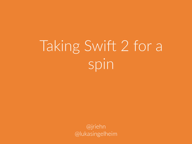 One year after Swift has been released, Apple introduced with Swift 2.0 the programming language of the future. Rather than just running only in an Apple environment, it will also run on an Unix environment and will be open sourced later this year. This years Github survey already placed Swift on the first place of programmers favourite languages. This talk will take the attendees (beginner to expert) for a spin through the new language features, as well as Xcode 7.0 IDE features. We will give a lot of hands on tipps and tricks, from our experience (> 1 year) with Swift in a production environment.