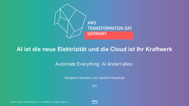 rights reserved. Benjamin Hermann und Joachim Rosskopf Zoi AI ist die neue Elektrizität und die Cloud ist Ihr Kraftwerk Automate Everything: AI ändert alles.