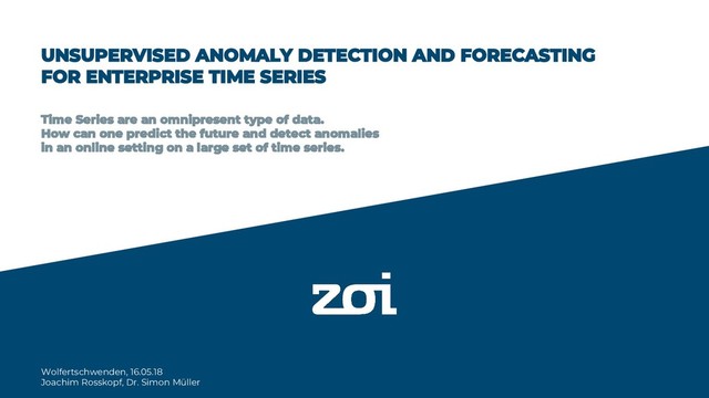 Series are an omnipresent type of data. How can one predict the future and detect anomalies in an online setting on a large set of time series. Wolfertschwenden, 16.05.18 Joachim Rosskopf, Dr. Simon Müller