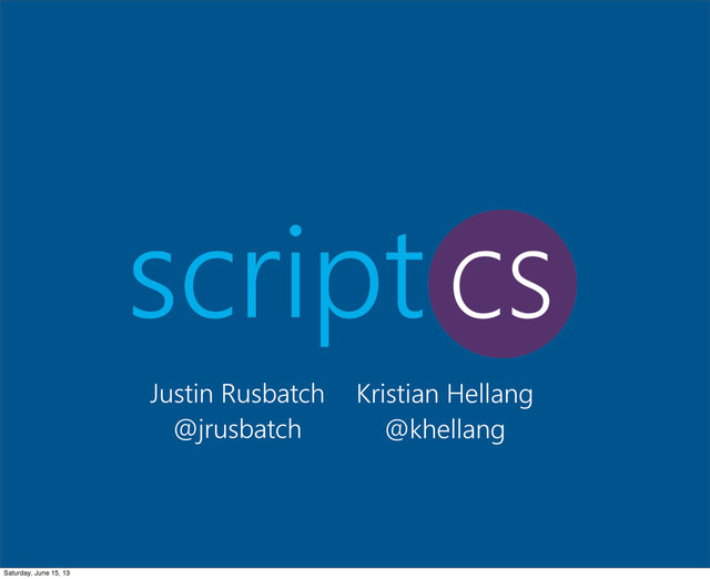 scriptcs is a new and exciting open source project that takes the overhead out of writing C# applications. Write and execute C# script files, written with a relaxed syntax that eliminates the need for namespaces and top-level classes, with only a simple text editor and your command prompt. Use NuGet to manage your dependencies and to install Script Packs, which further reduce the amount of code you need to write to setup your favorite frameworks. In this session I'll show you how to get started with scriptcs.
