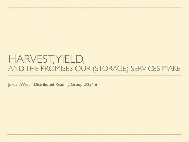 Harvest, Yield, and the Promises Our (Storage) Services Make