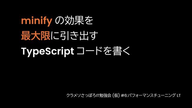 minify の効果を 最大限に引き出す TypeScript コードを書く クラメソさっぽろIT勉強会 (仮) #6:パフォーマンスチューニング LT