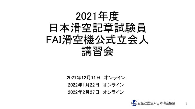 Gliding (Class D: グライダー、Class DM: モーターグライダー) • Chapter 1 General rules and definitions (定義) • Chapter 2 Badges and badge procedures (記章) • Chapter 3 Records and record procedures (記録) • Chapter 4 Official Observers and certification (公式立会人) • Chapter 5 Glider classes and international competitions (競技会) 26