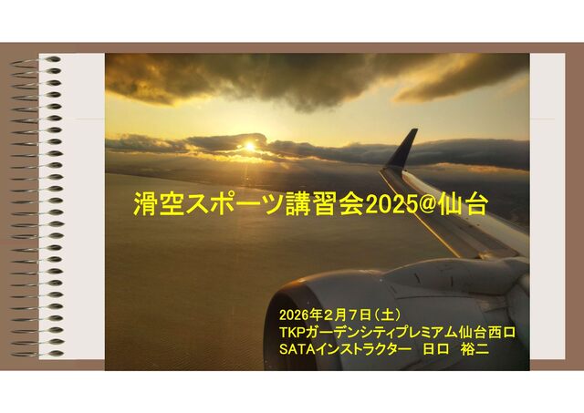 滑空スポーツ講習会2025@仙台 2026年2月7日(土) TKPガーデンシティプレミアム仙台西口 SATAインストラクター 日口 裕二