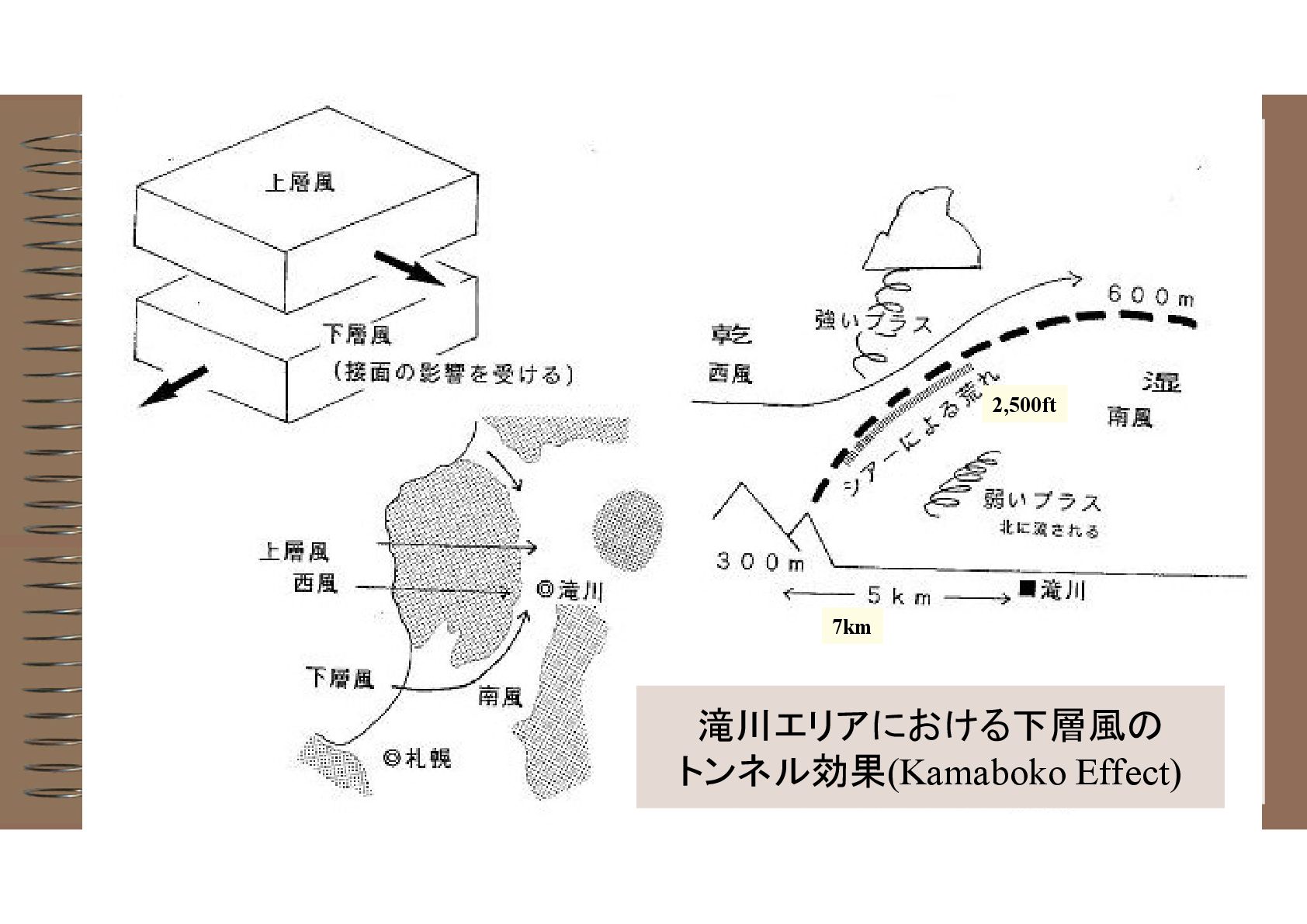 滝川エリアにおける下層風の トンネル効果(Kamaboko Effect) 2,500ft 7km