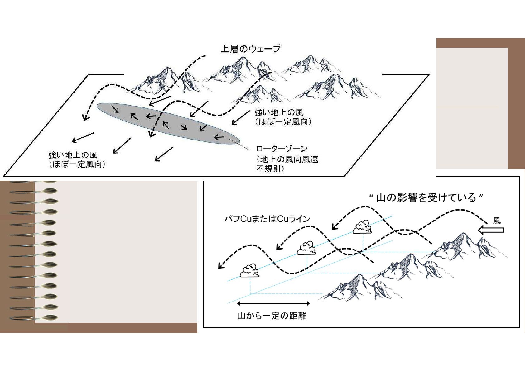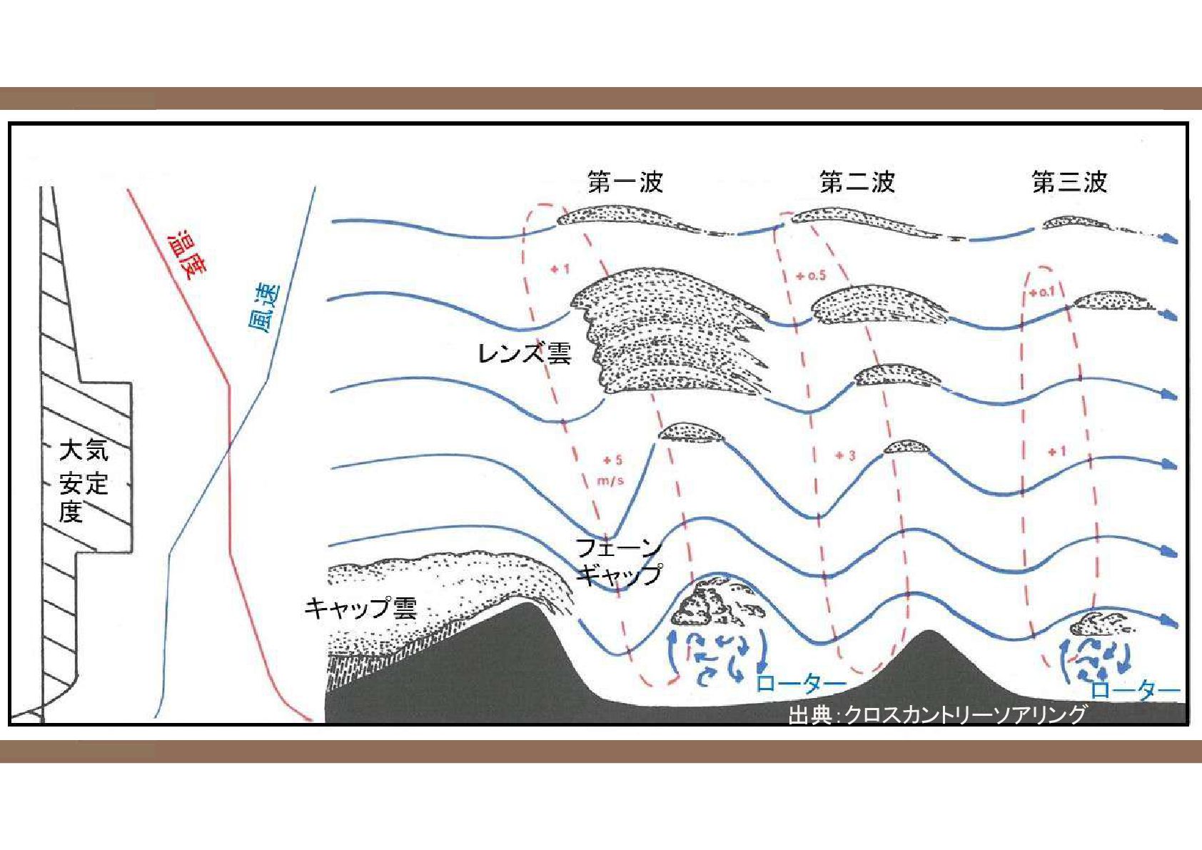 今日お話しすること ◆コンバージェンスを飛ぶ ・コンバージェンスコンディションだとわかるには ・コンバージェンスの種類と性質 ・大気のパワーバランス ※積乱雲によるコンバージェンスは今日は対象外 ◆ウェーブを飛ぶ ・ウェーブコンディション(サーマルからウェーブへ) ・ブルーウェーブを飛ぶ ・特殊なウェーブ形態