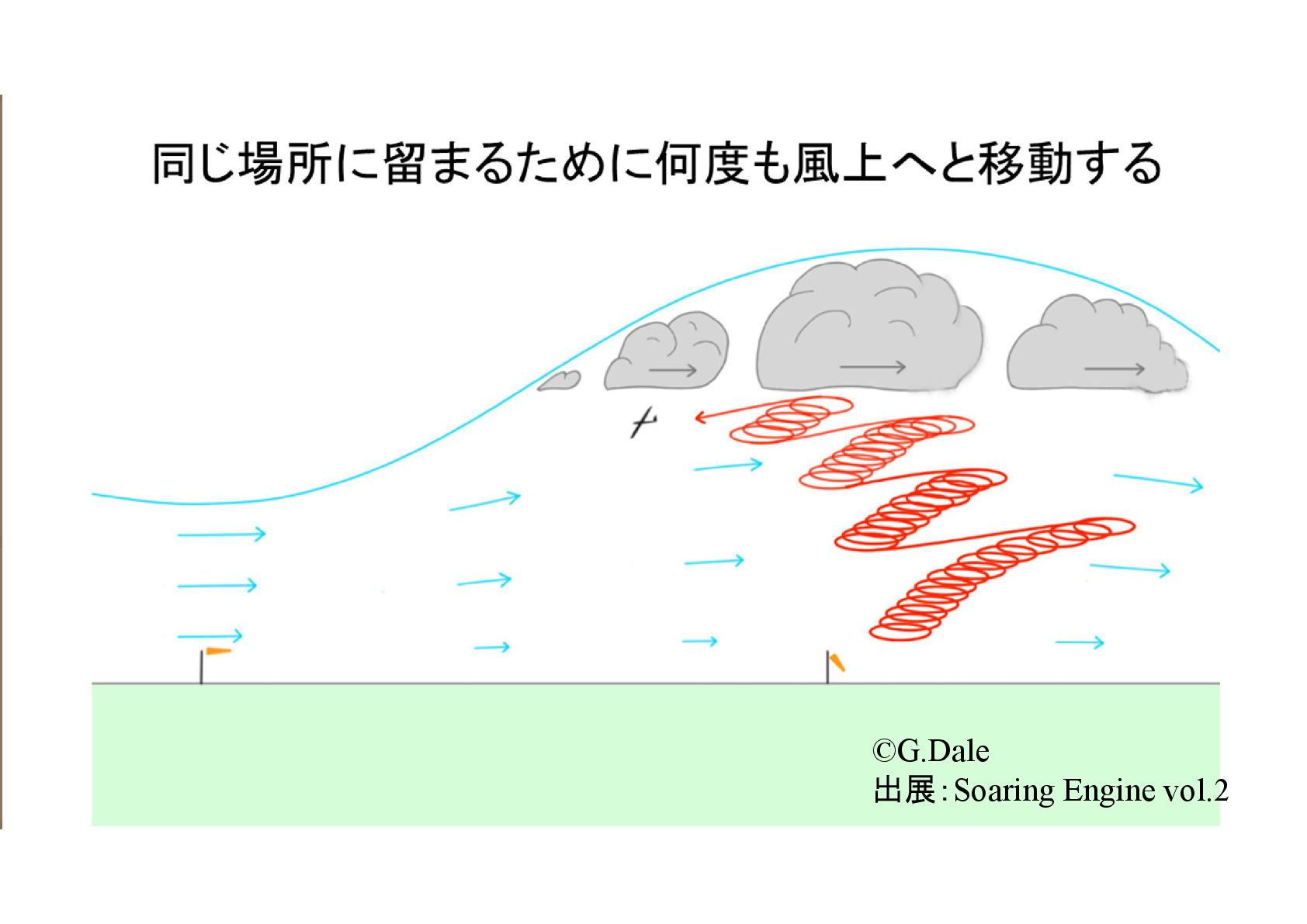 向岸風コンディション時の行動 ©G.Dale 出展:Soaring Engine vol.2