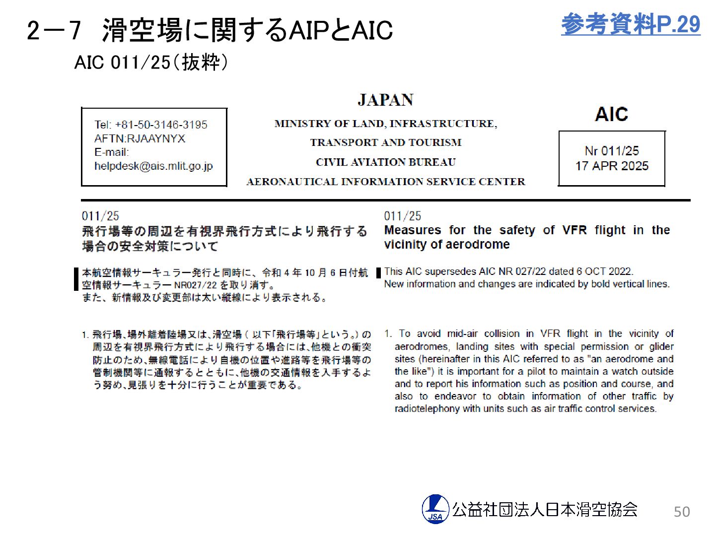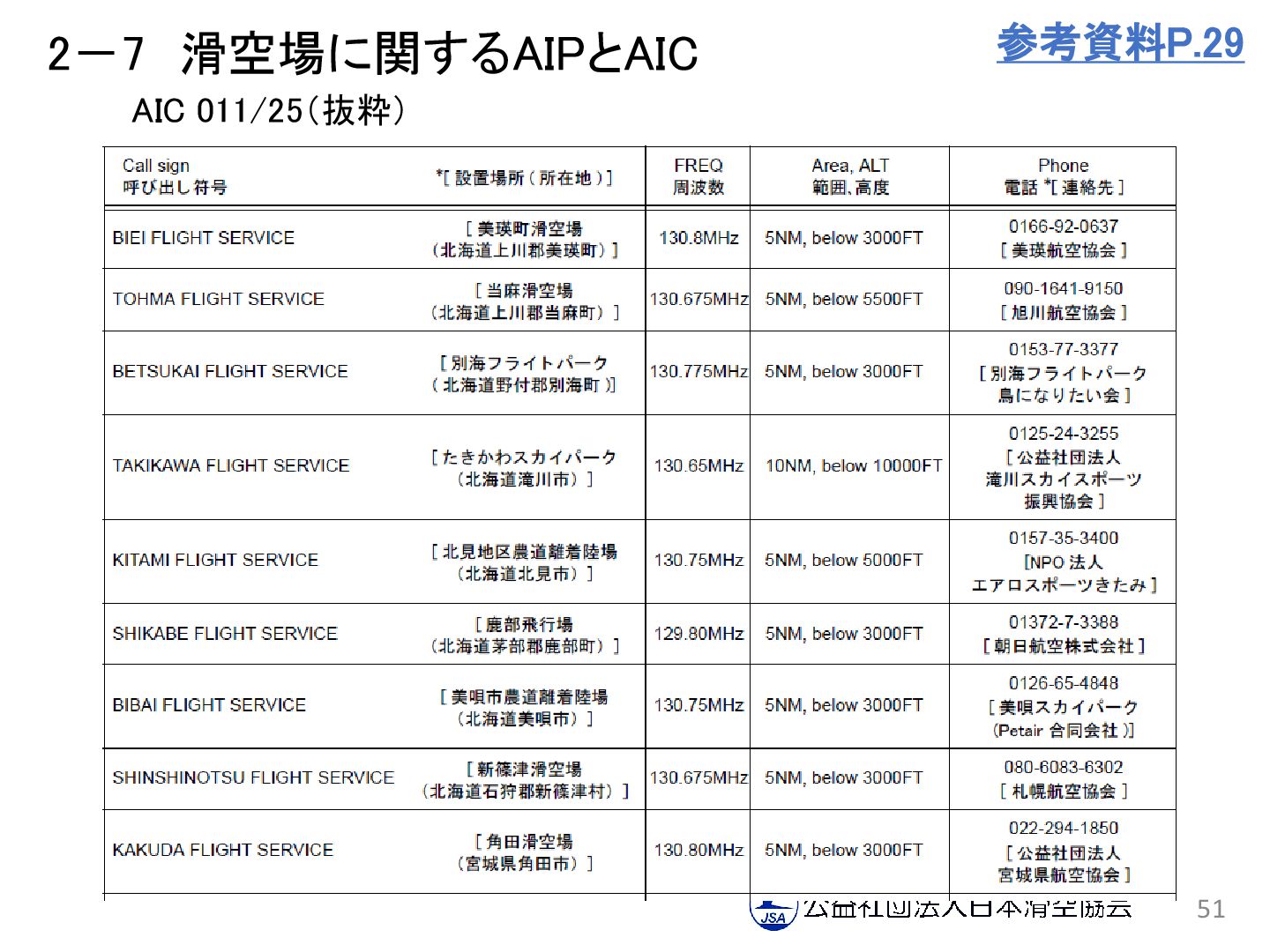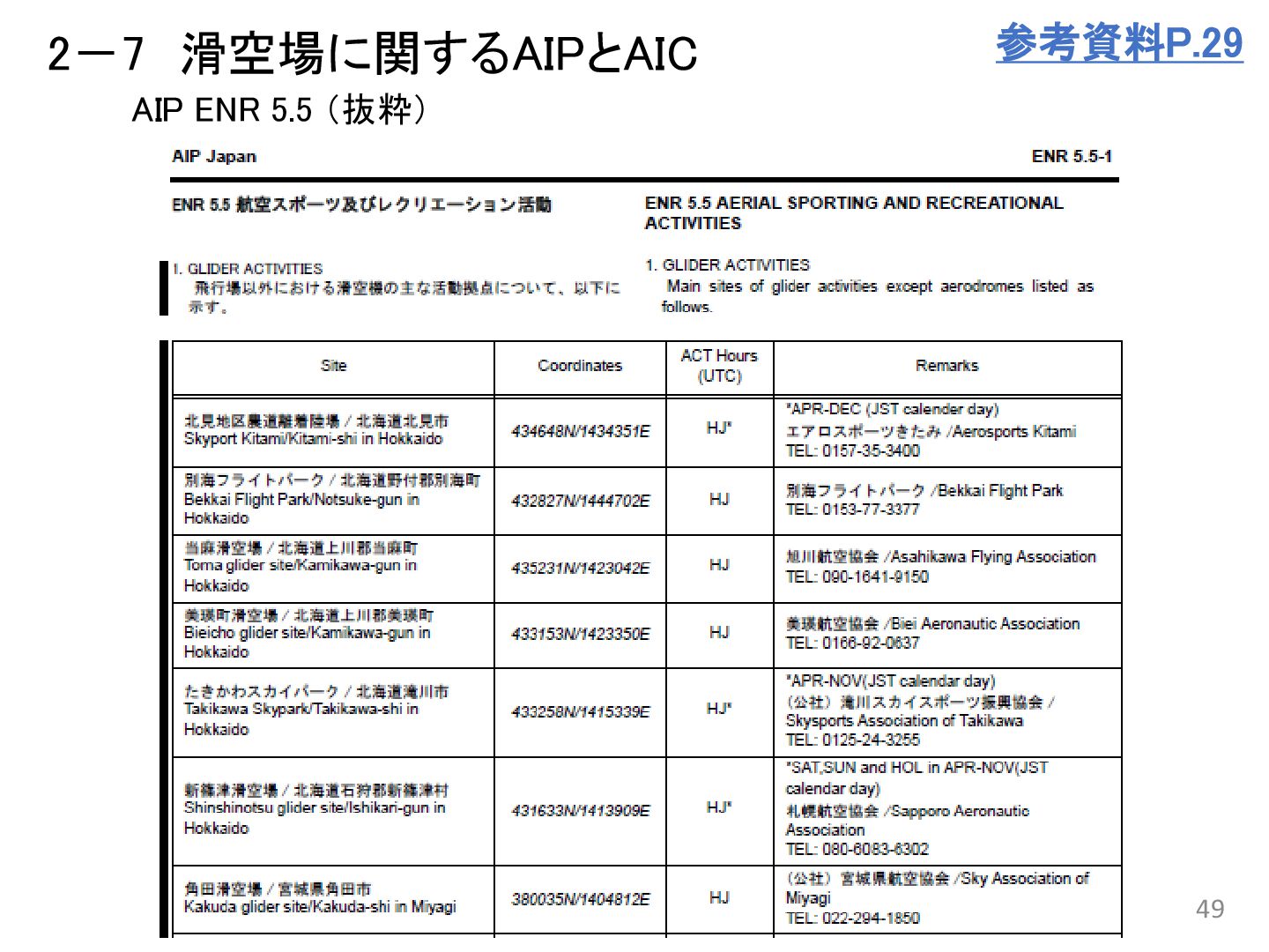 49 AIP ENR 5.5 (抜粋) 2-7 滑空場に関するAIPとAIC 参考資料P.29