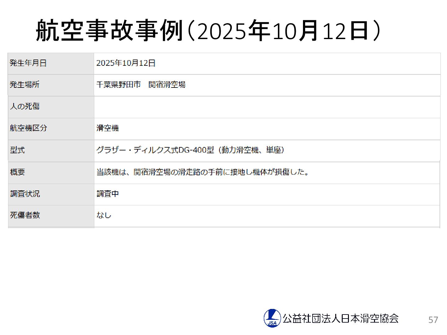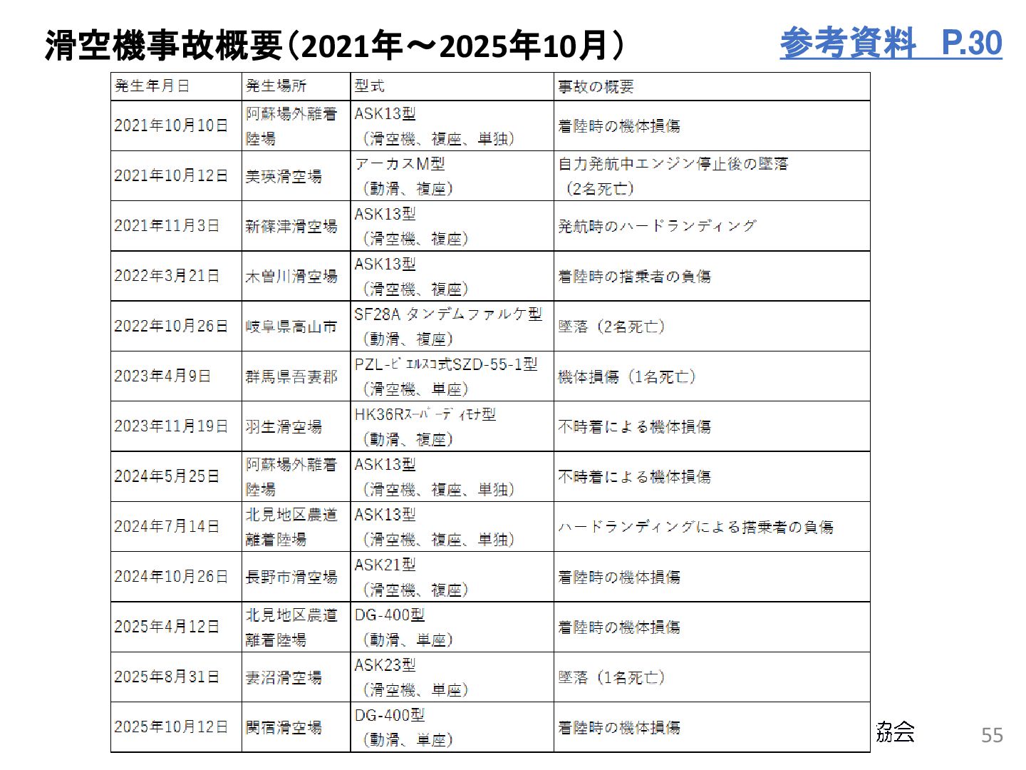 滑空機事故概要(2021年~2025年10月) 参考資料 P.30 55
