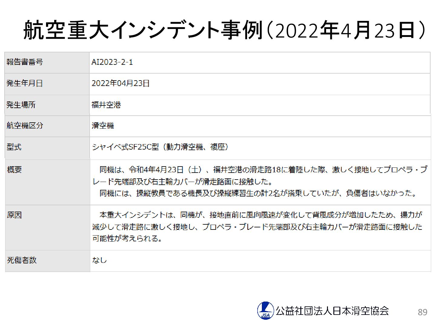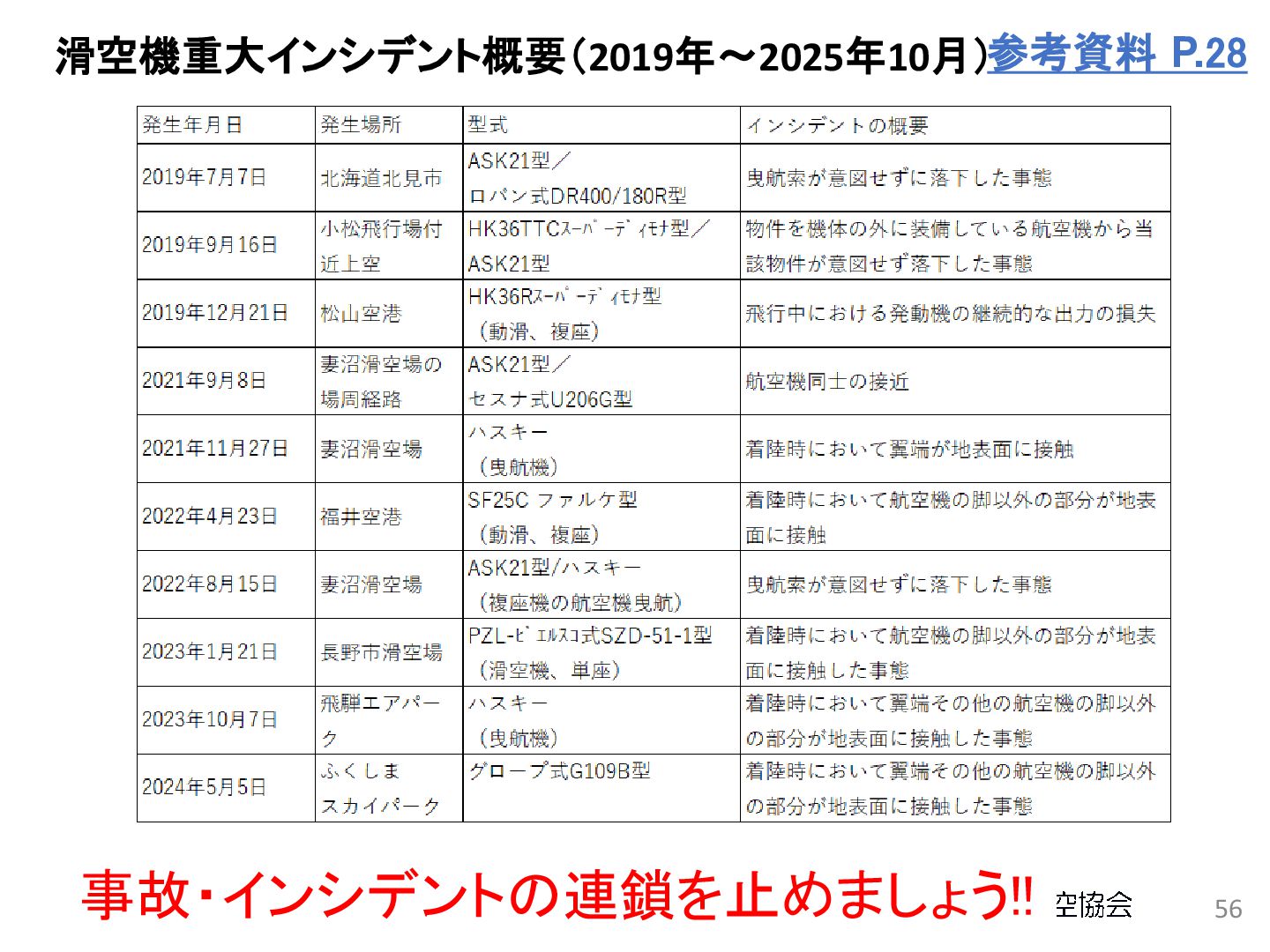 滑空機重大インシデント概要(2019年~2025年10月) 56 事故・インシデントの連鎖を止めましょう!! 参考資料 P.28