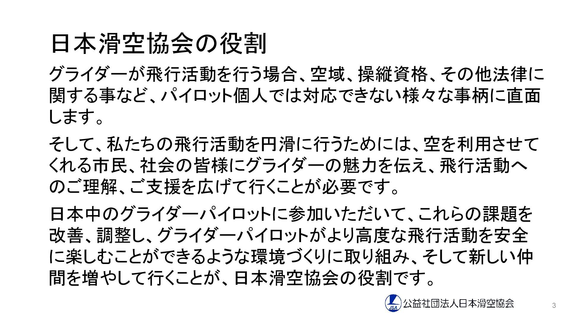 間を増やして行くことが、日本滑空協会の役割です。 3