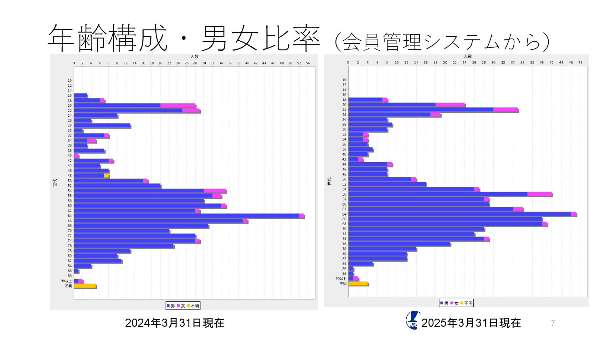 年齢構成・男女比率(会員管理システムから) 7 2024年3月31日現在 2025年3月31日現在