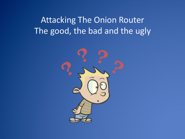 concerns (EFF, Human Rights Watch, various universities) • 50% non-USG funding goal by 2016 • Tor conspiracy theories (honeypot) • Harassment of developers