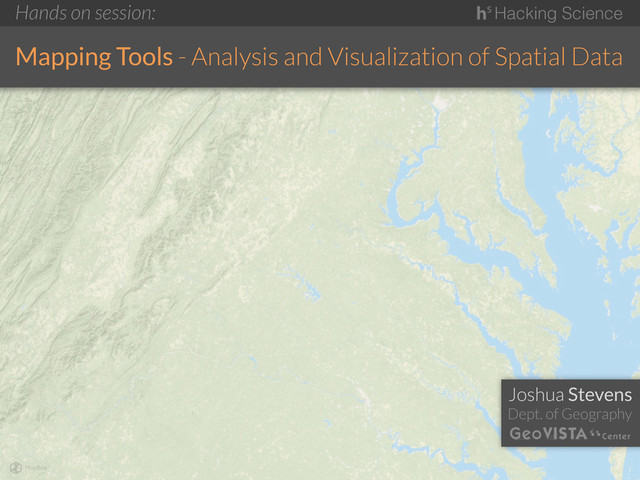 Brief introduction and overview of some existing mapping tools, leading up to a demo of CartoDB. Presented to Penn State's Hacking Science group January 11, 2013.
