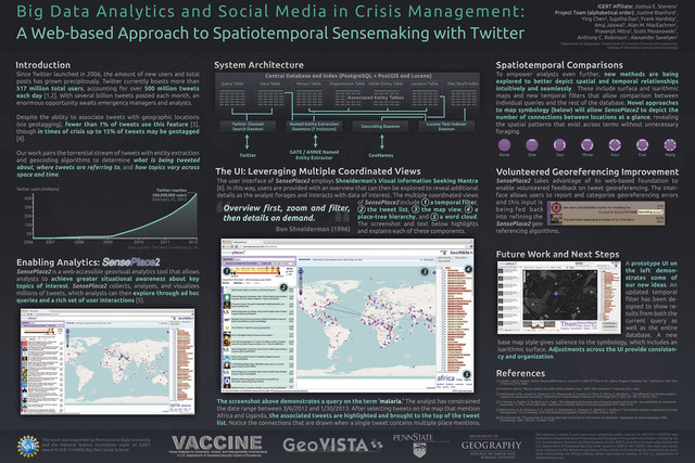 SensePlace2 is a geovisual analytics application for social media, developed in the Penn State GeoVISTA Center with help from associates in IST and CSE.