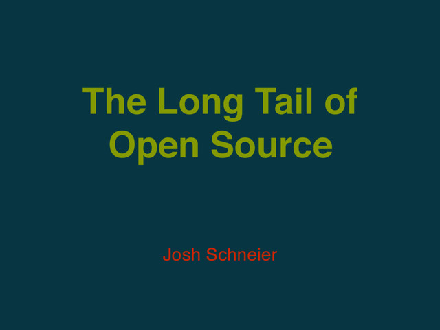 A small talk I gave about the motivations and disillusions of maintaining a small and heavily used package. I talked about the "Long Tail" in contrast to projects like the Linux Kernel or CPython and the various support models that some open source software is adopting.