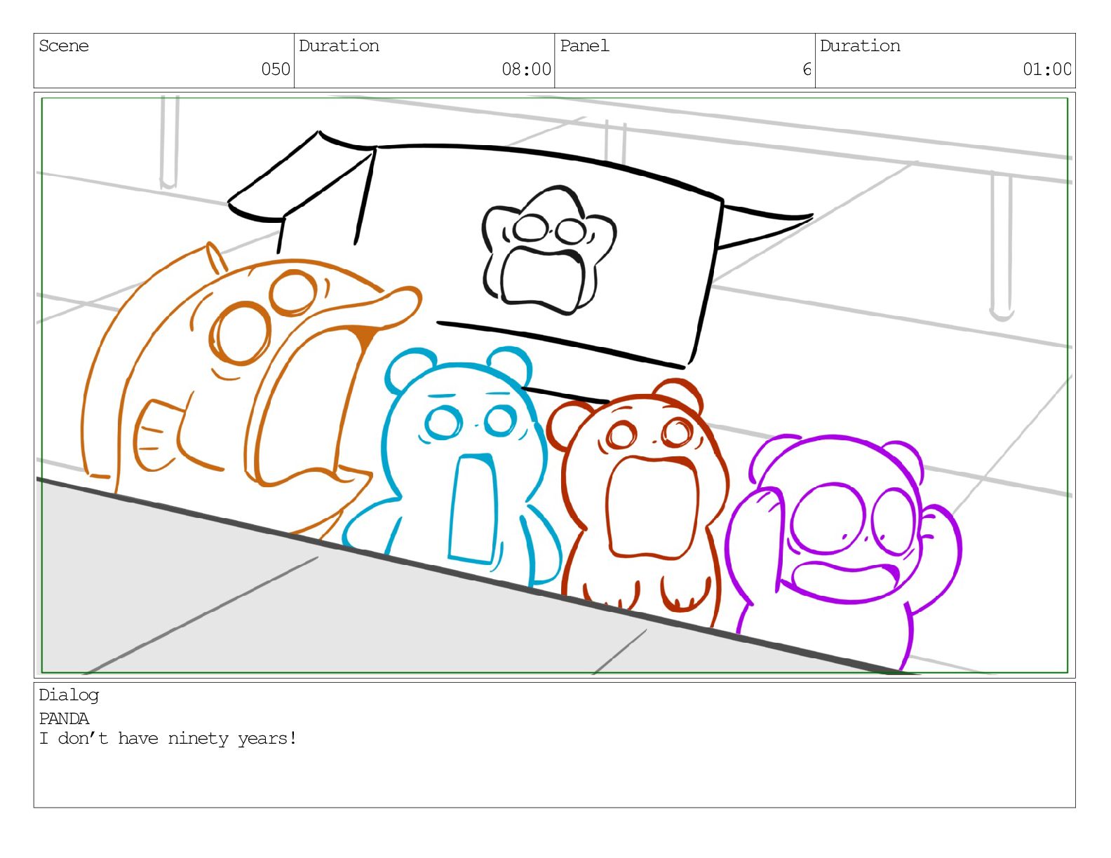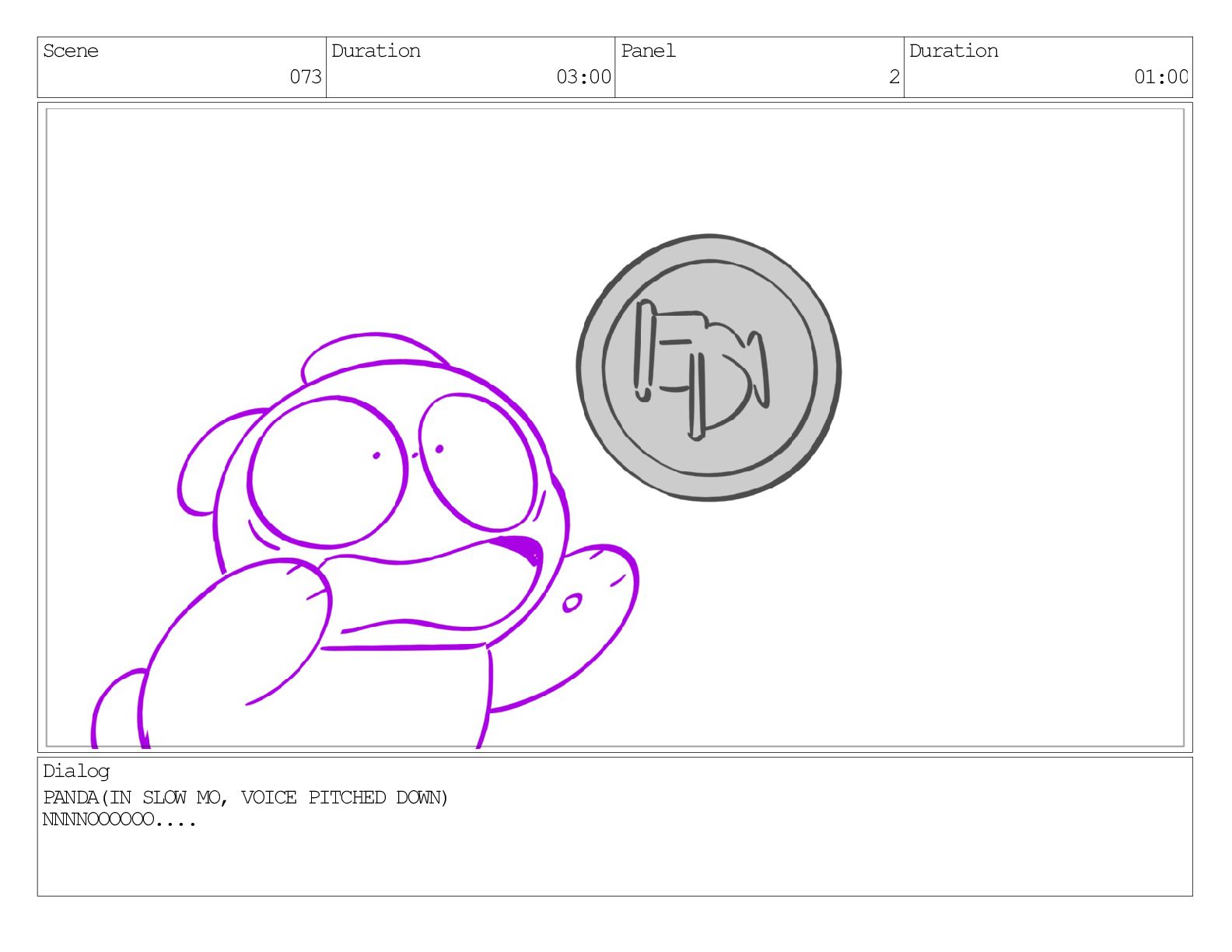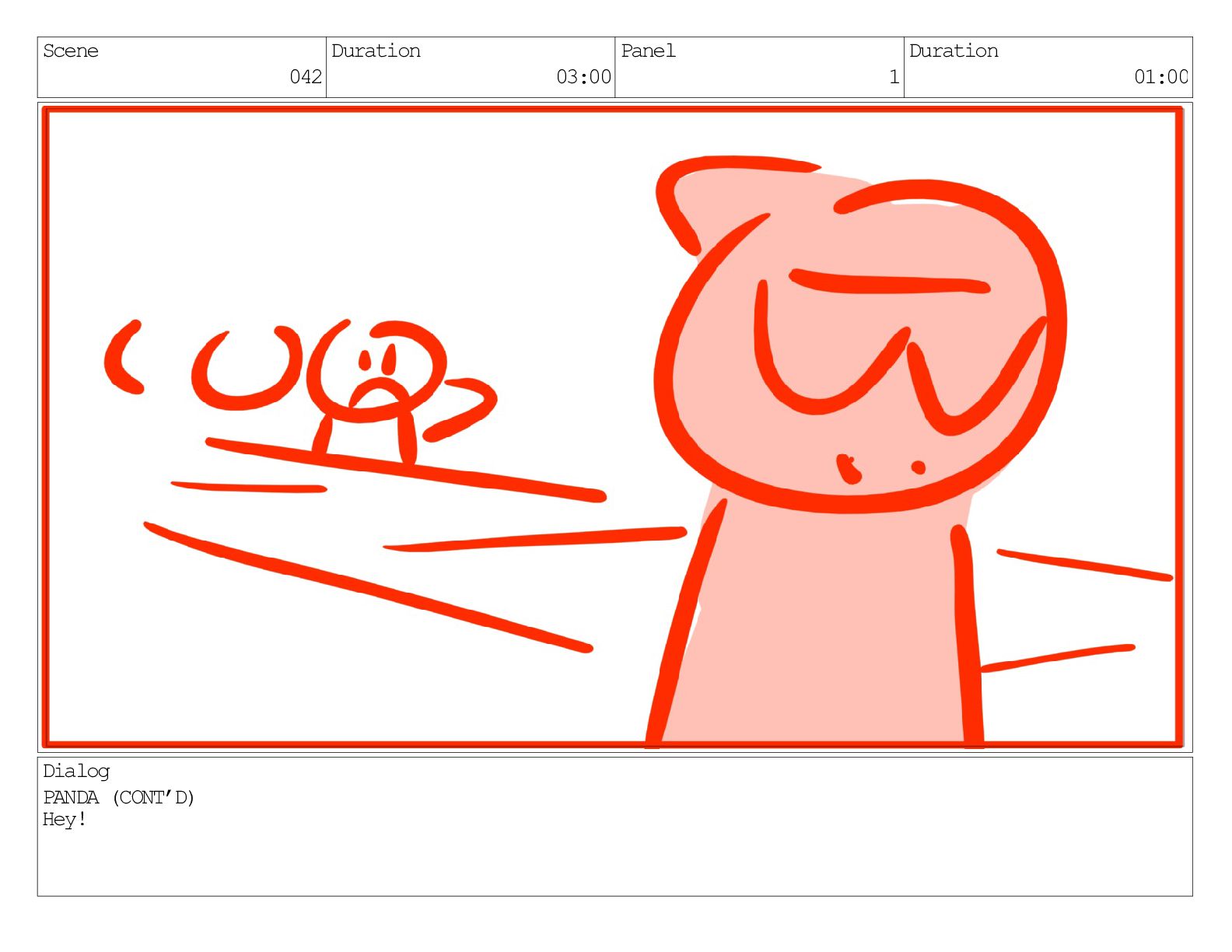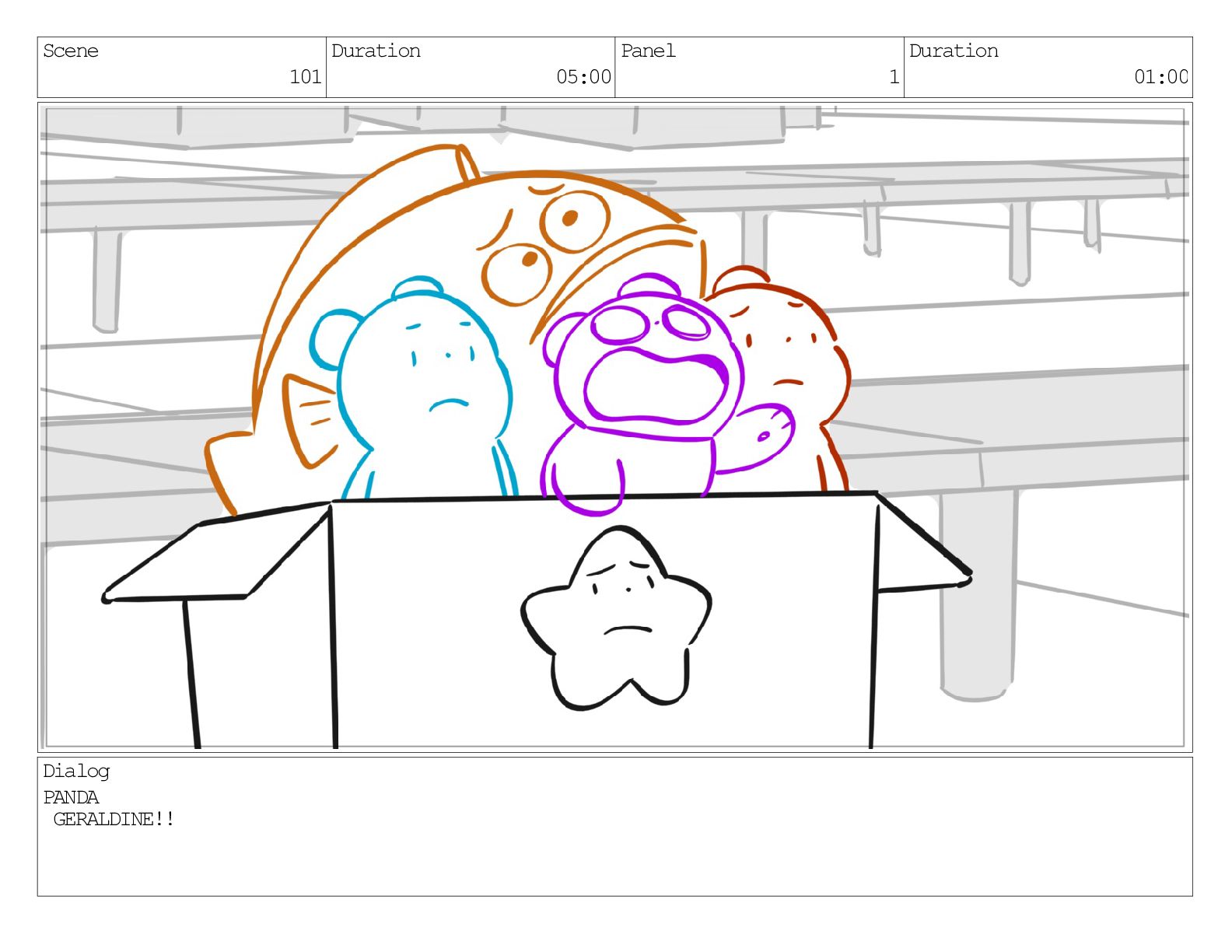 Scene 101 Duration 05:00 Panel 1 Duration 01:00 Dialog PANDA