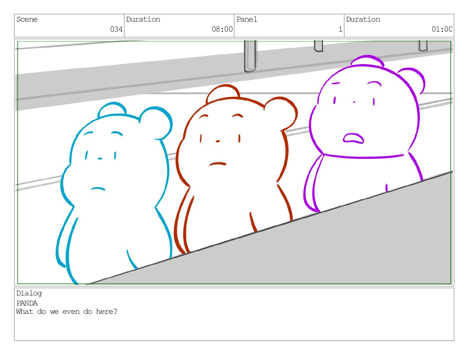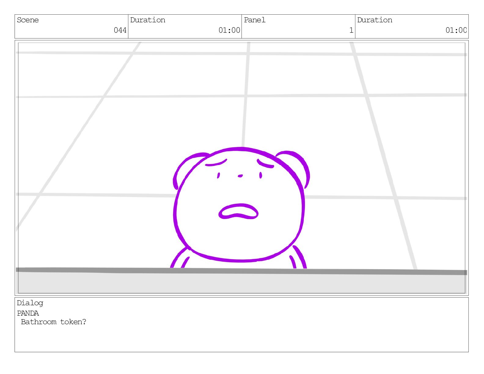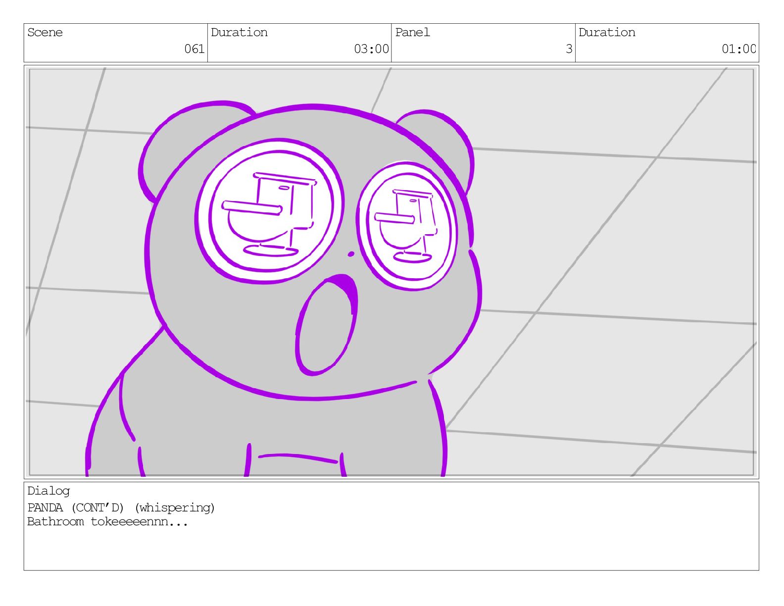Scene 101 Duration 05:00 Panel 1 Duration 01:00 Dialog PANDA