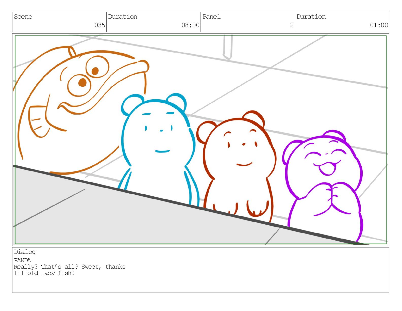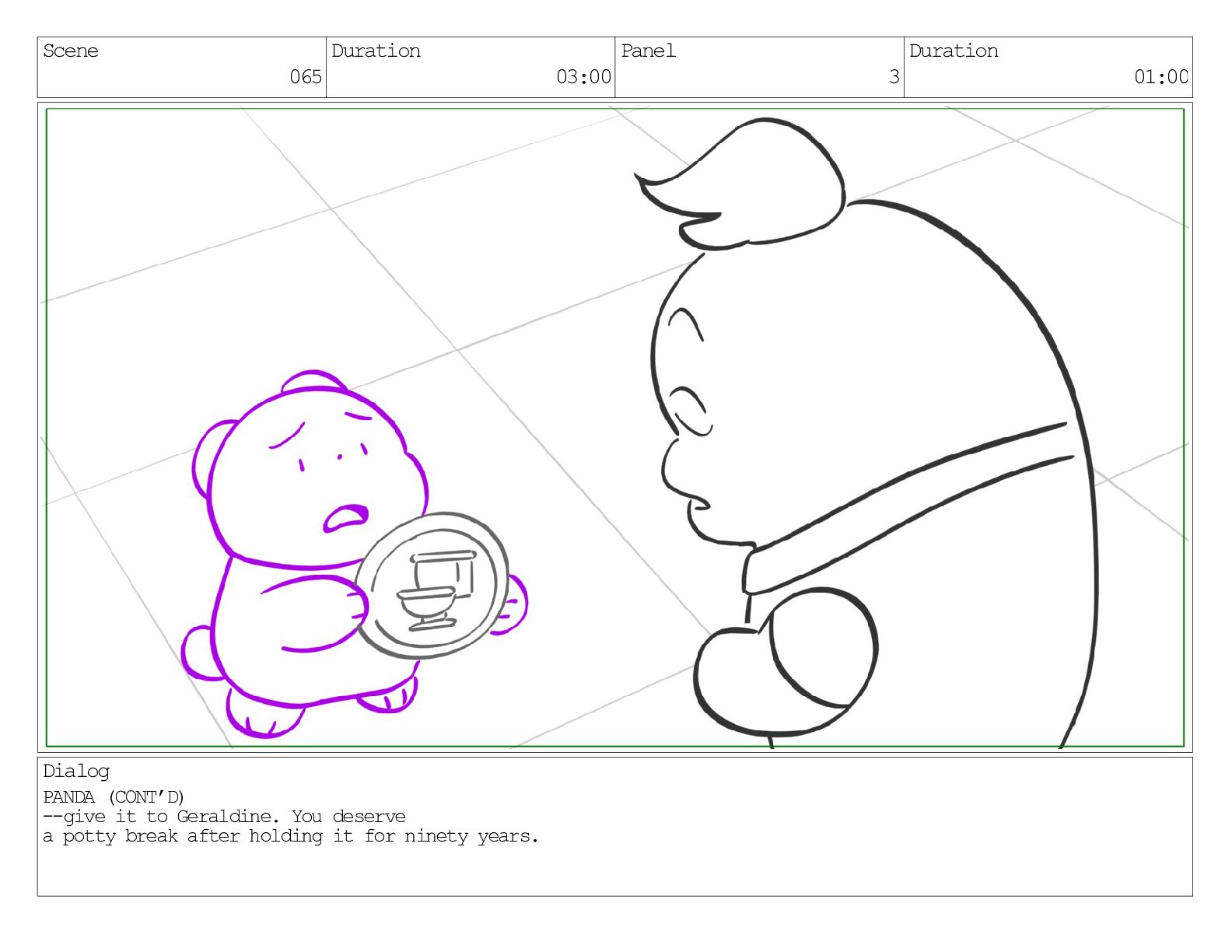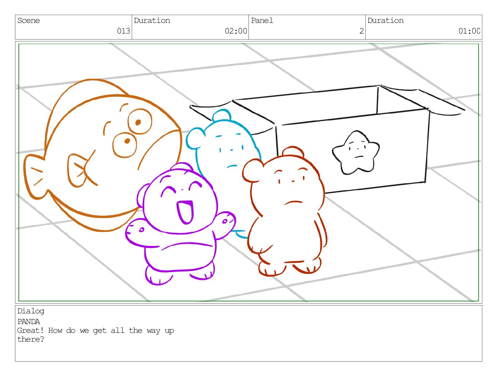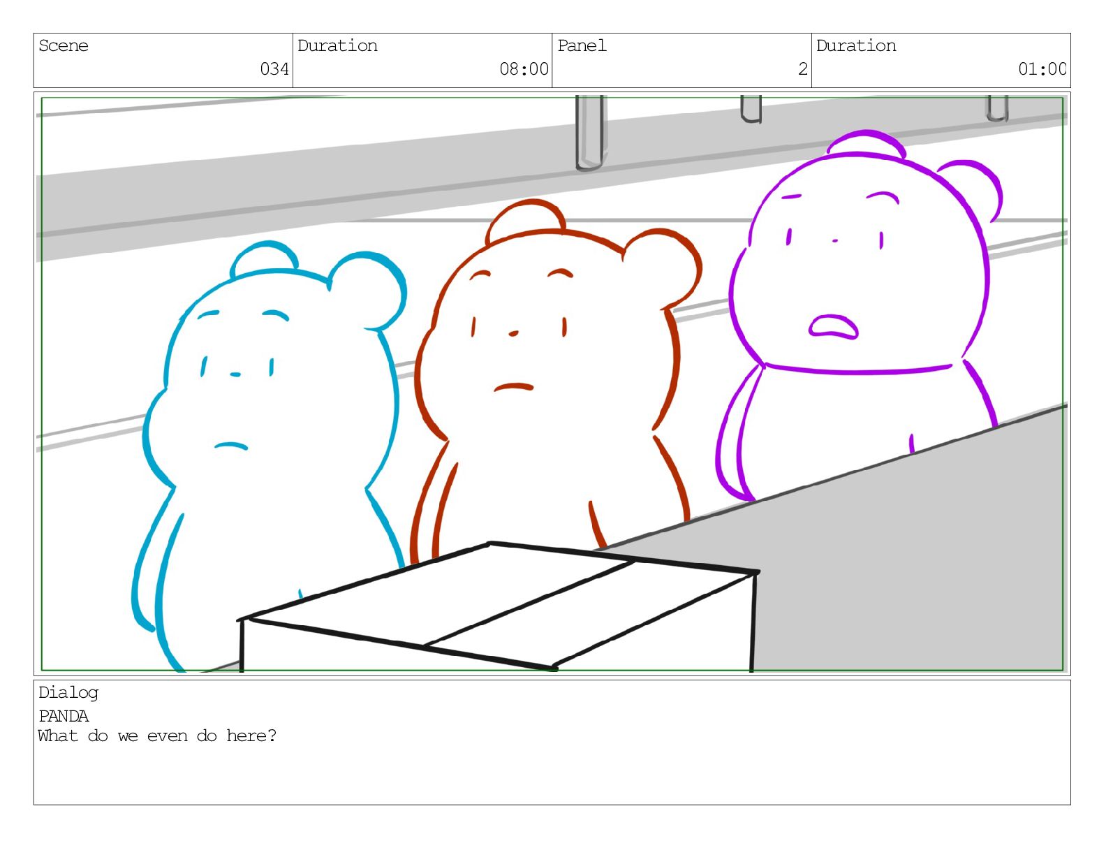 Scene 101 Duration 05:00 Panel 1 Duration 01:00 Dialog PANDA