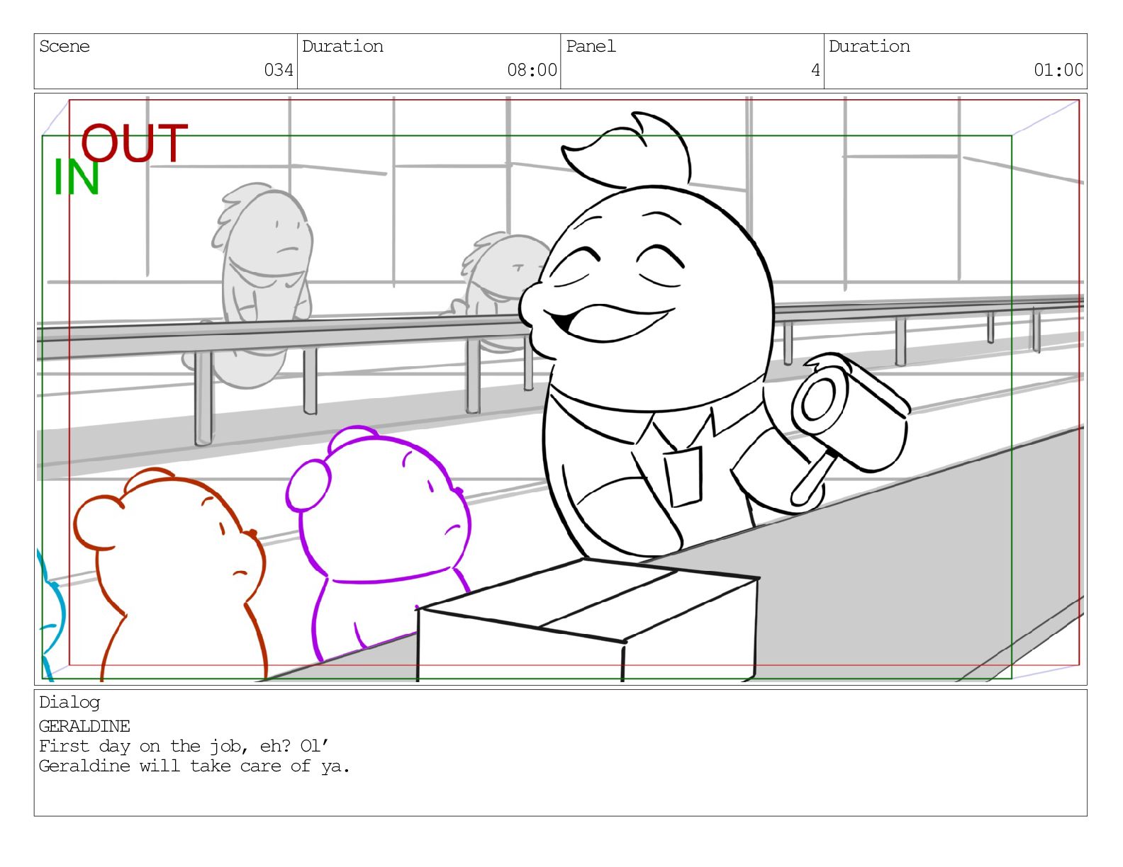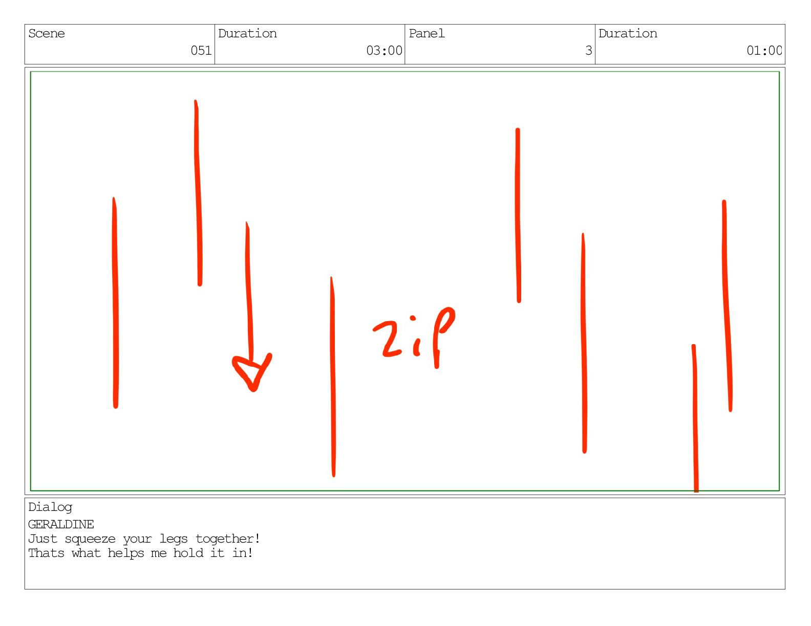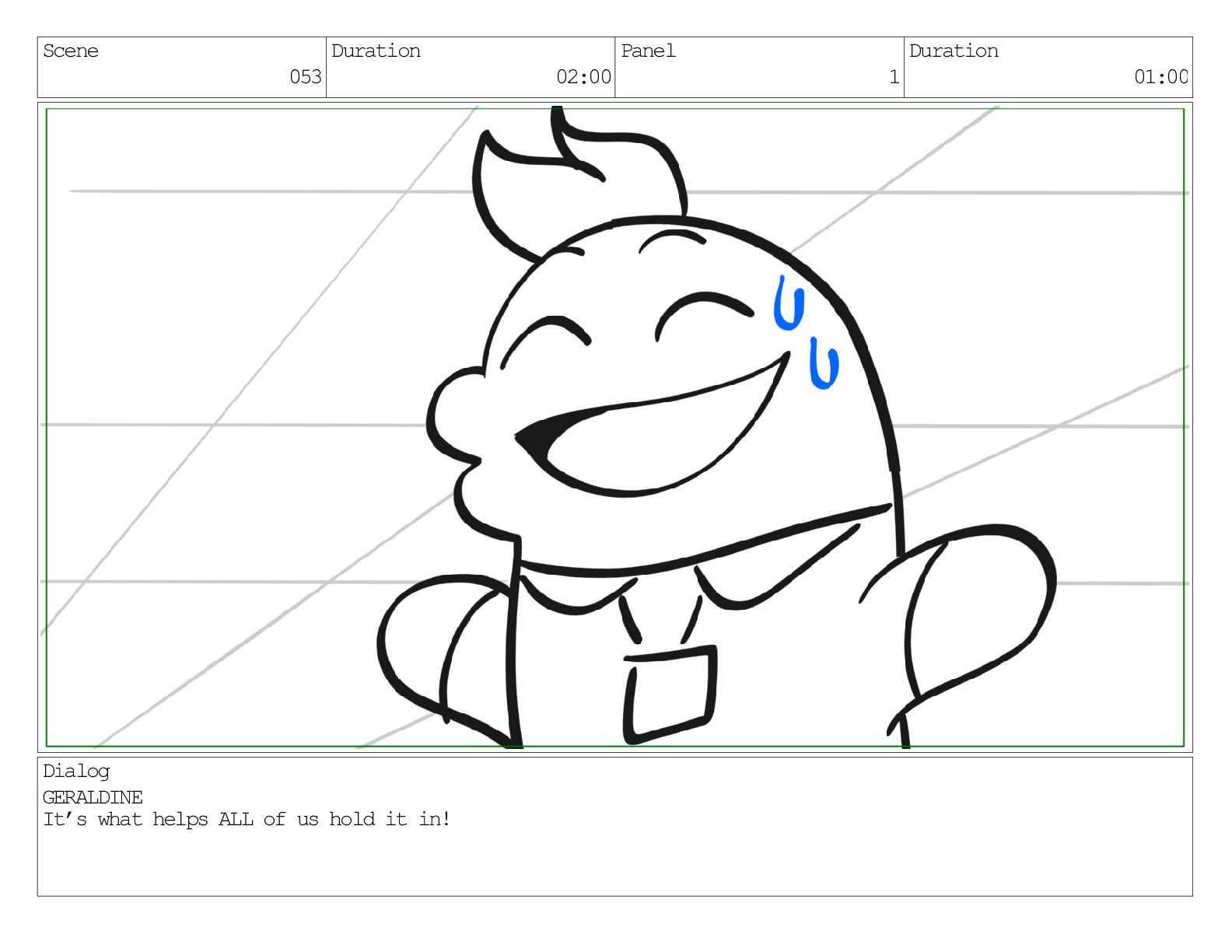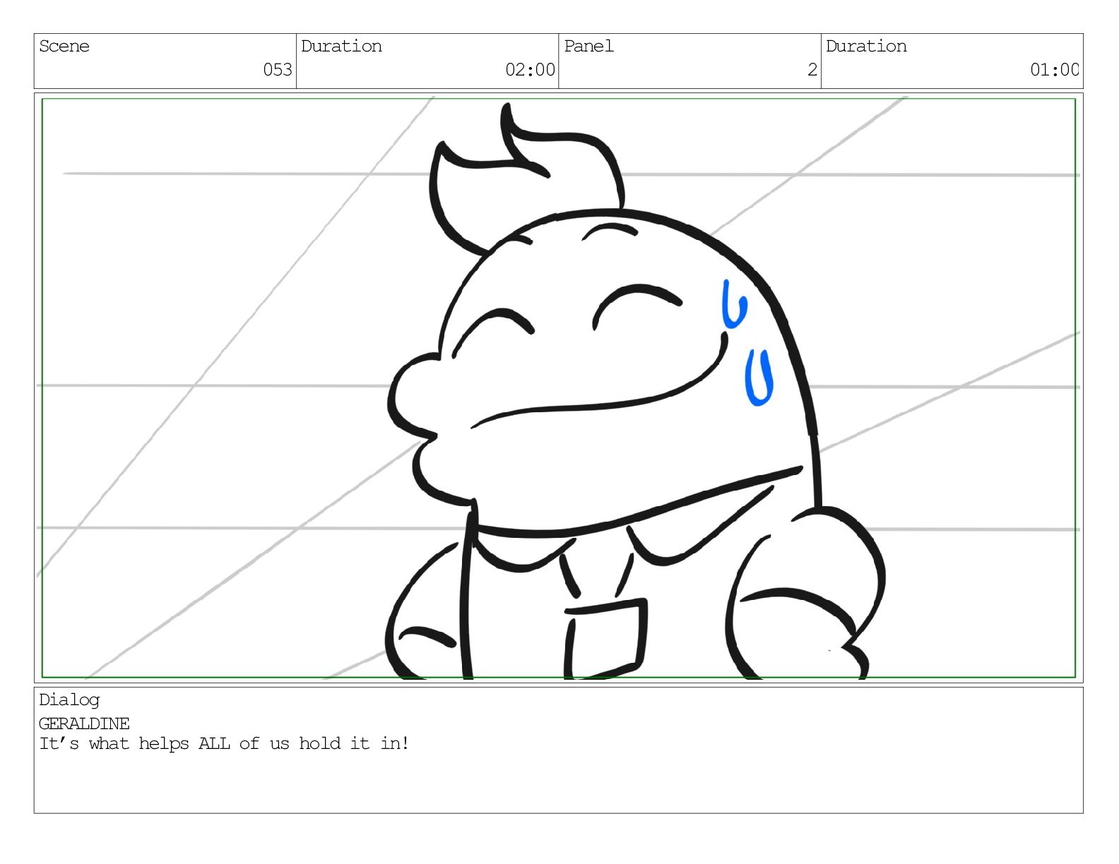 Scene 099 Duration 04:00 Panel 1 Duration 01:00 Dialog GERALDINE