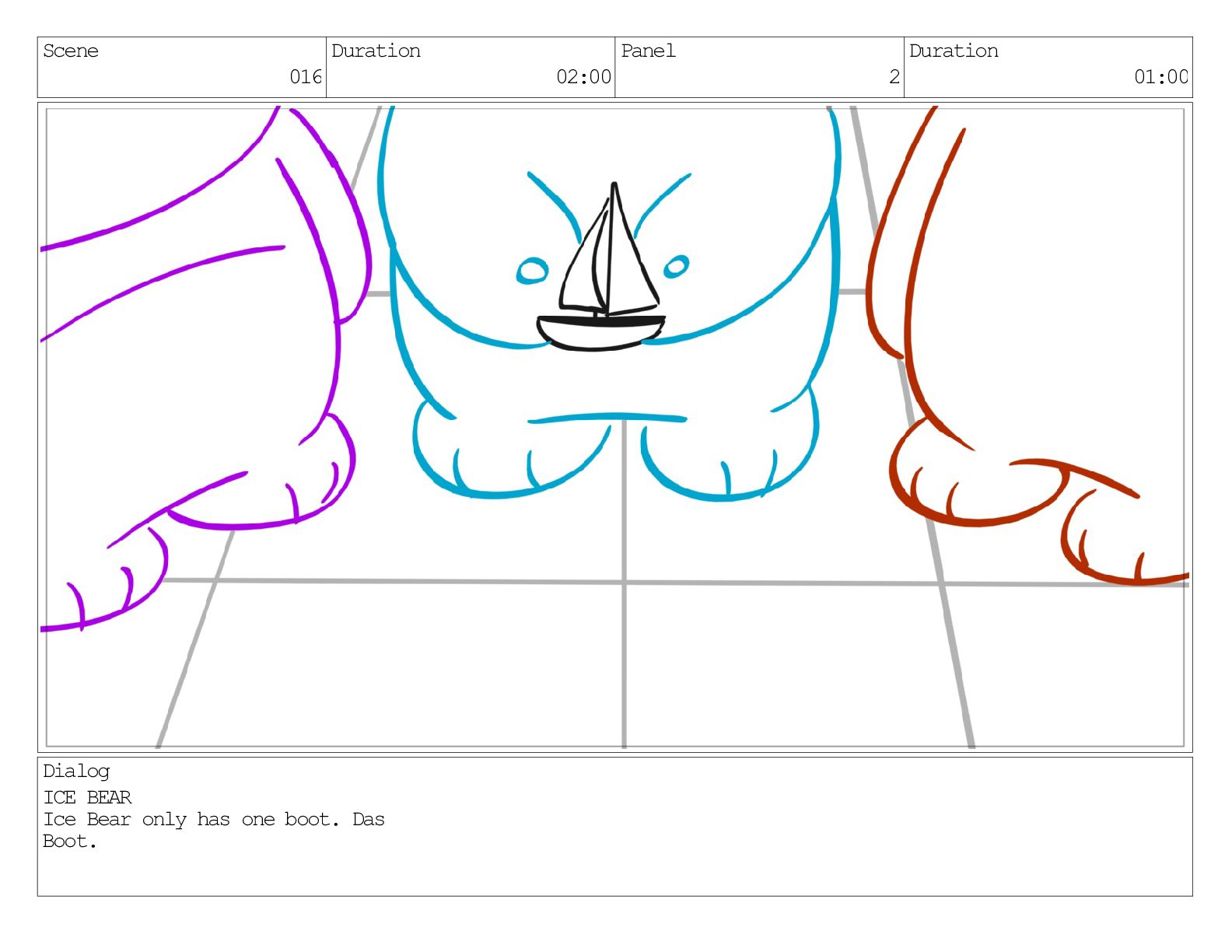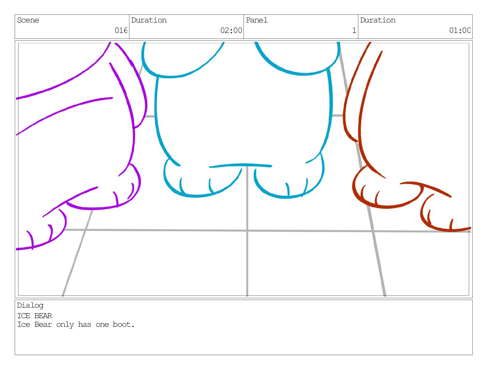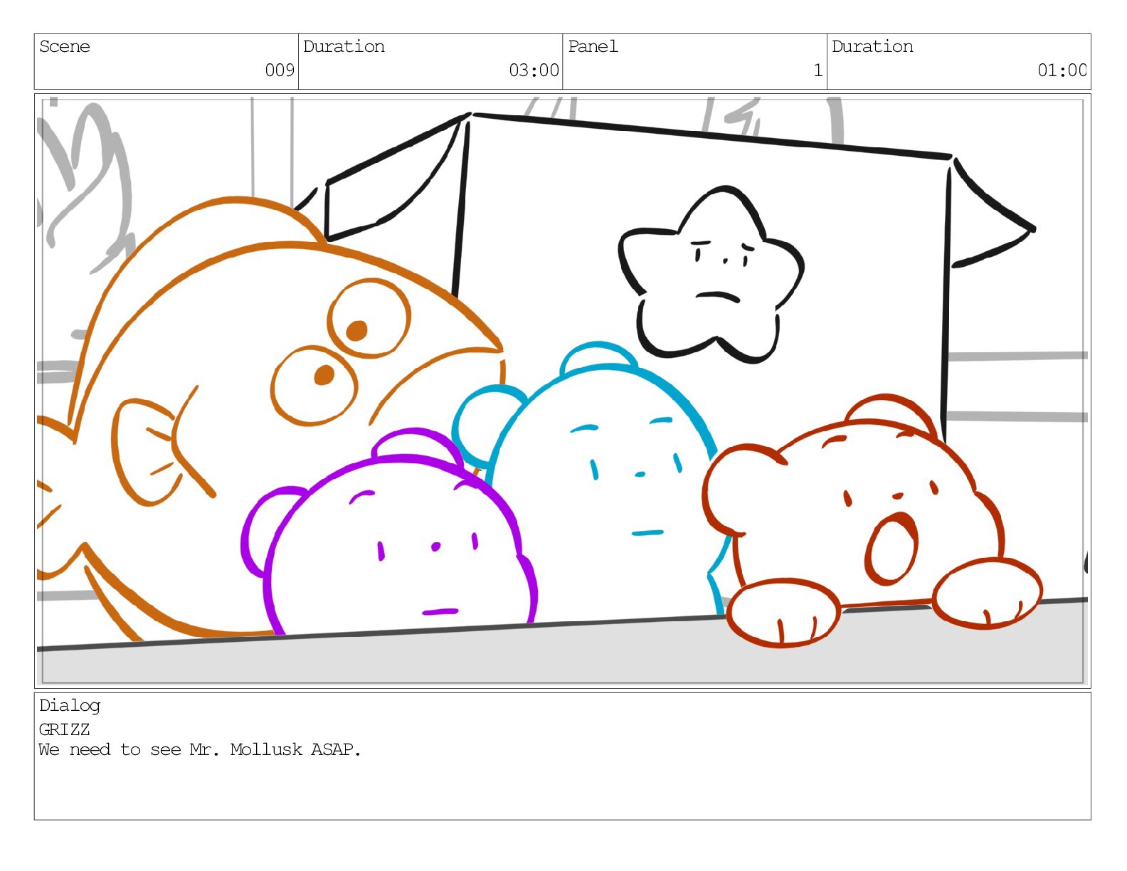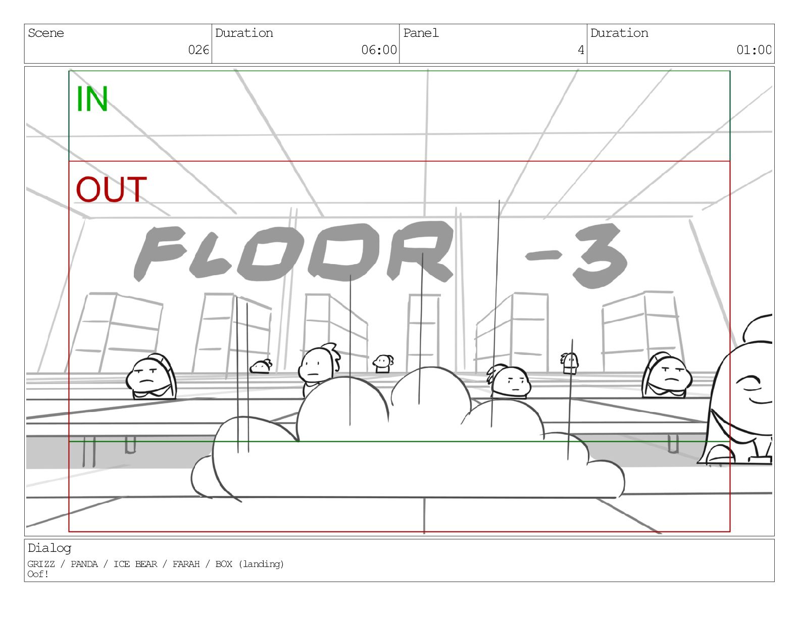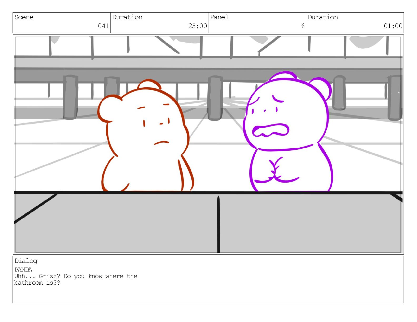 Scene 101 Duration 05:00 Panel 2 Duration 01:00 Dialog GRIZZ