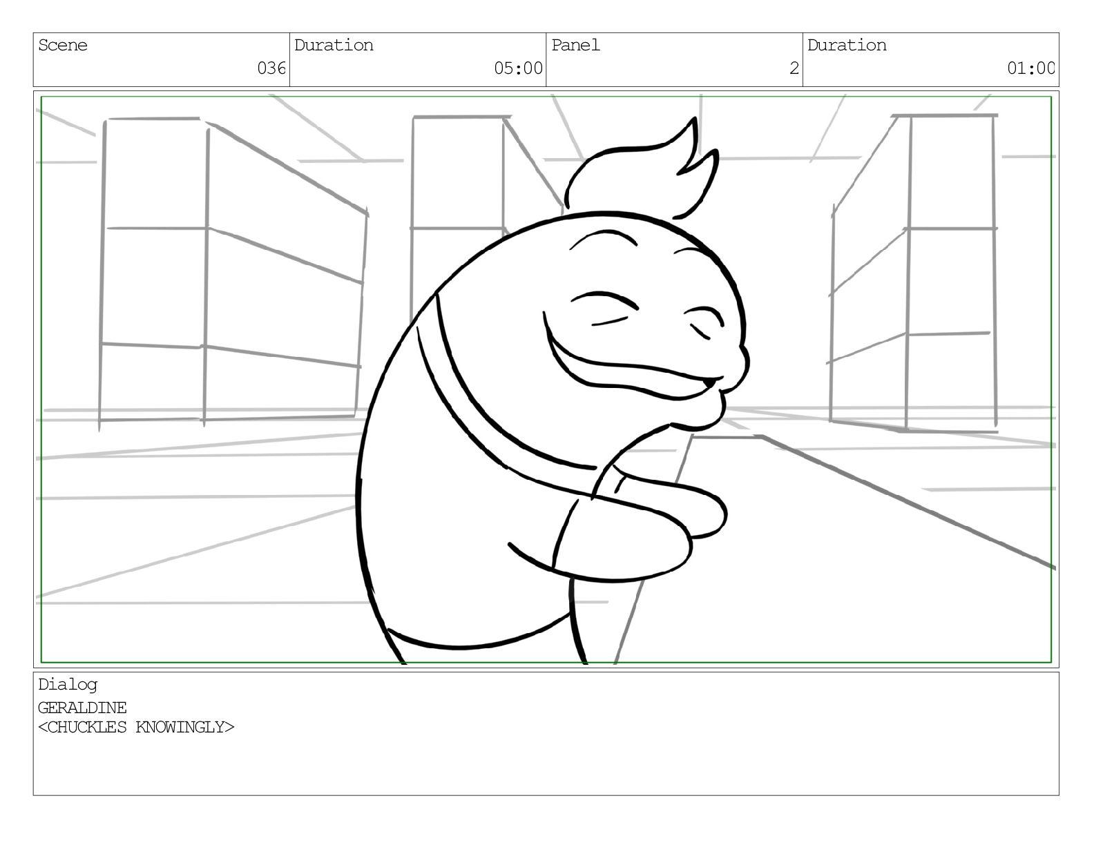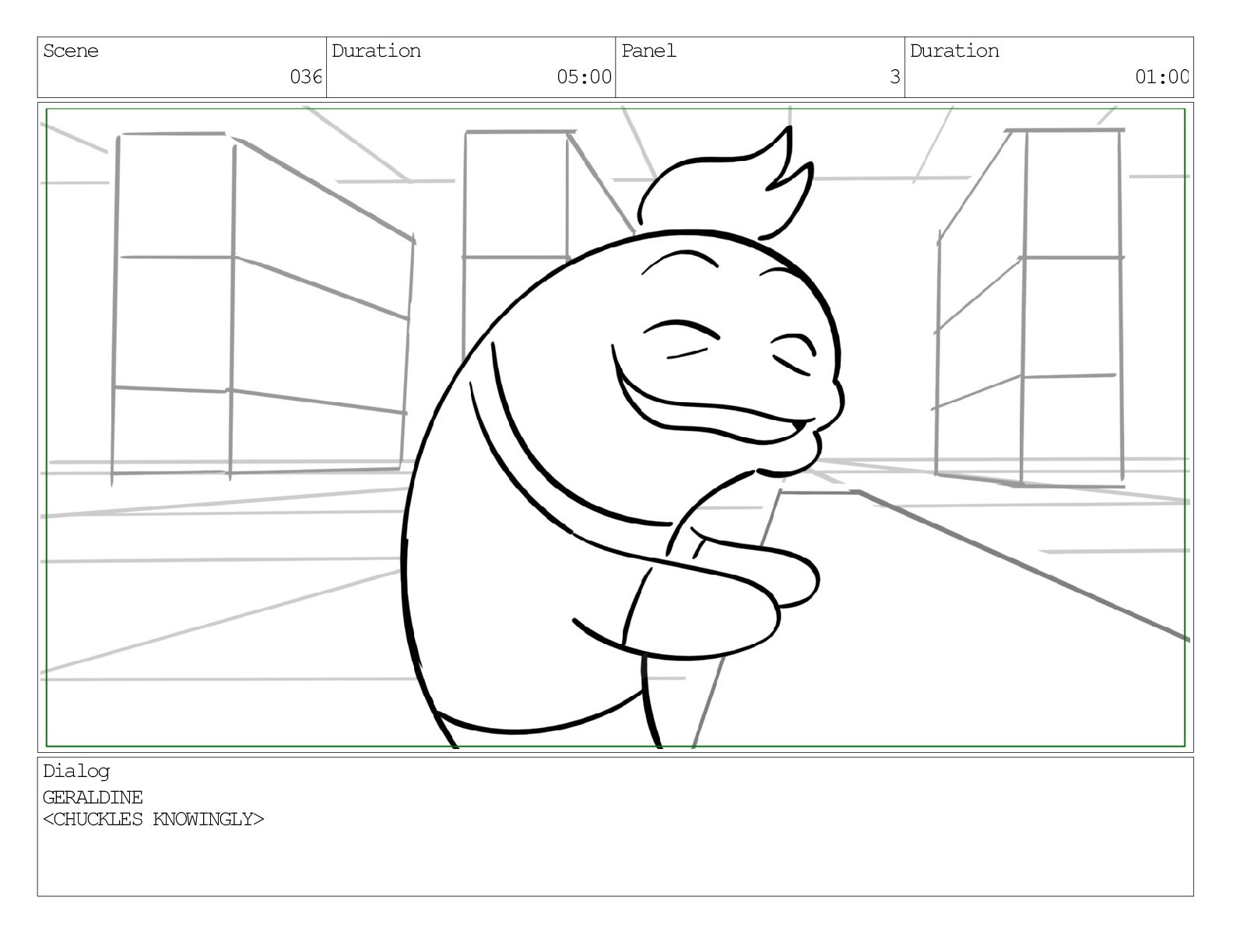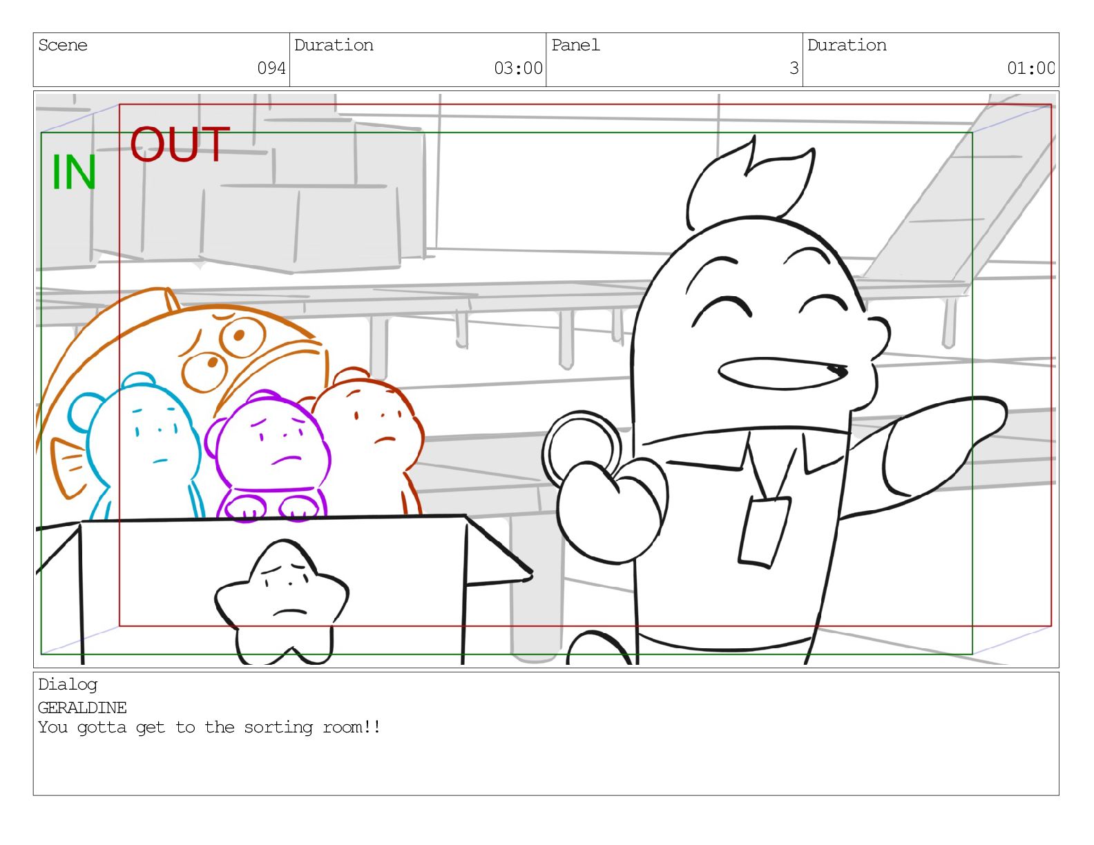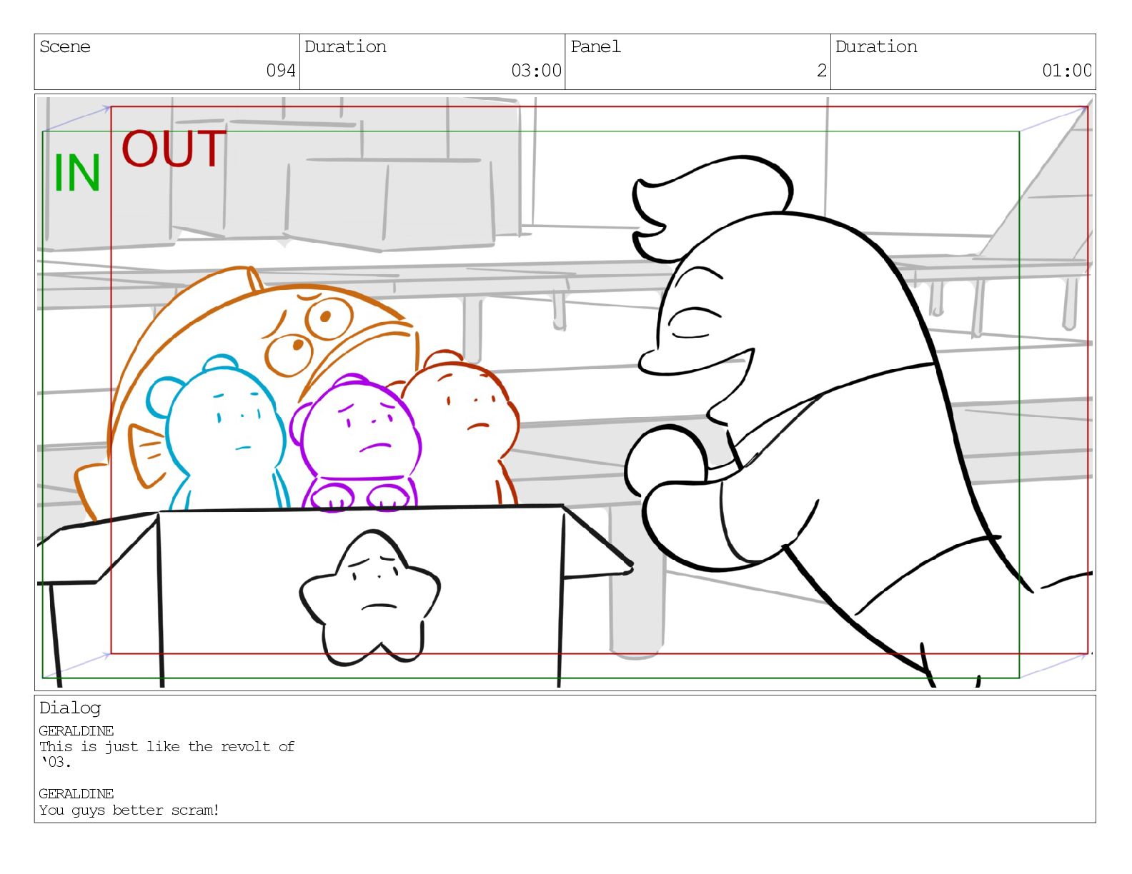 Scene 094 Duration 03:00 Panel 3 Duration 01:00 Dialog GERALDINE
