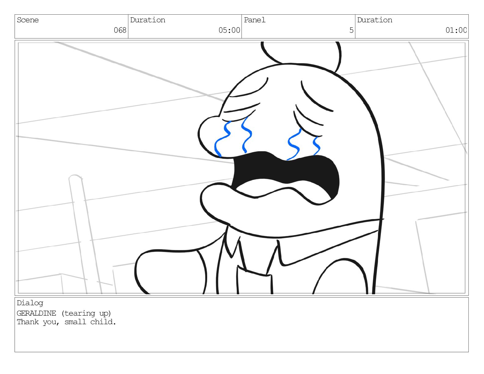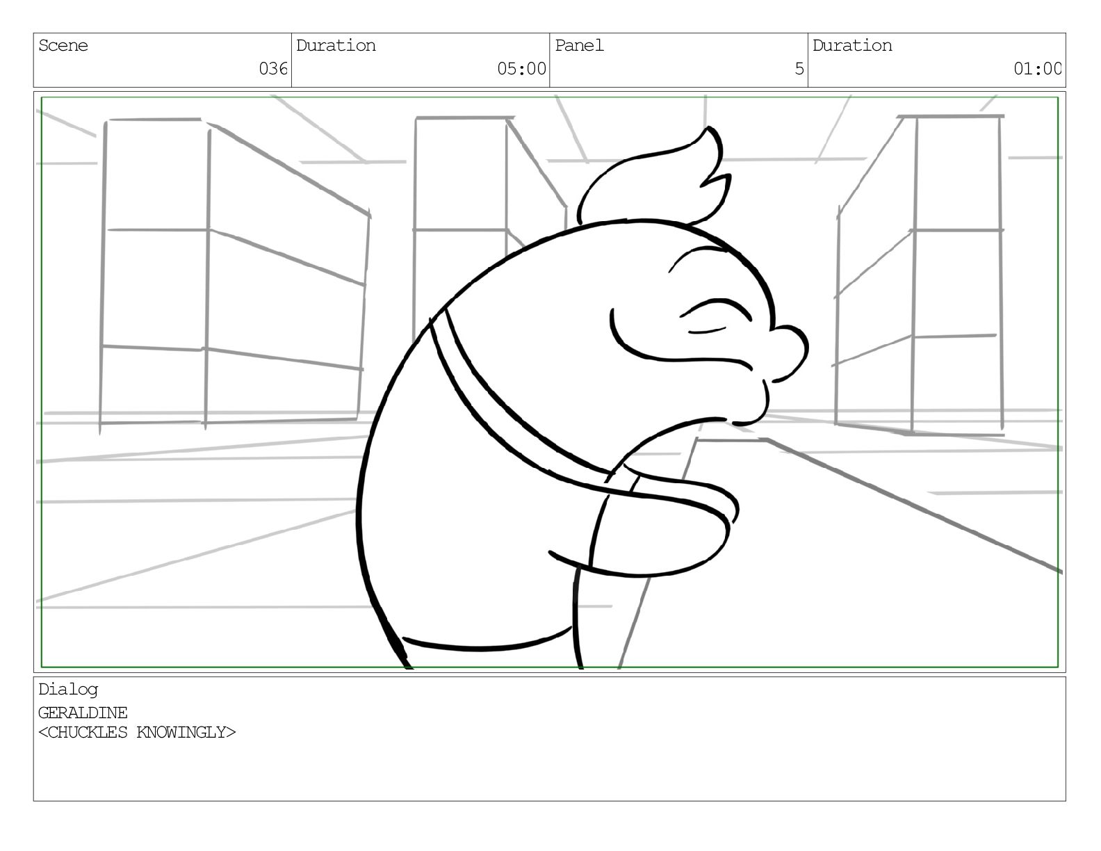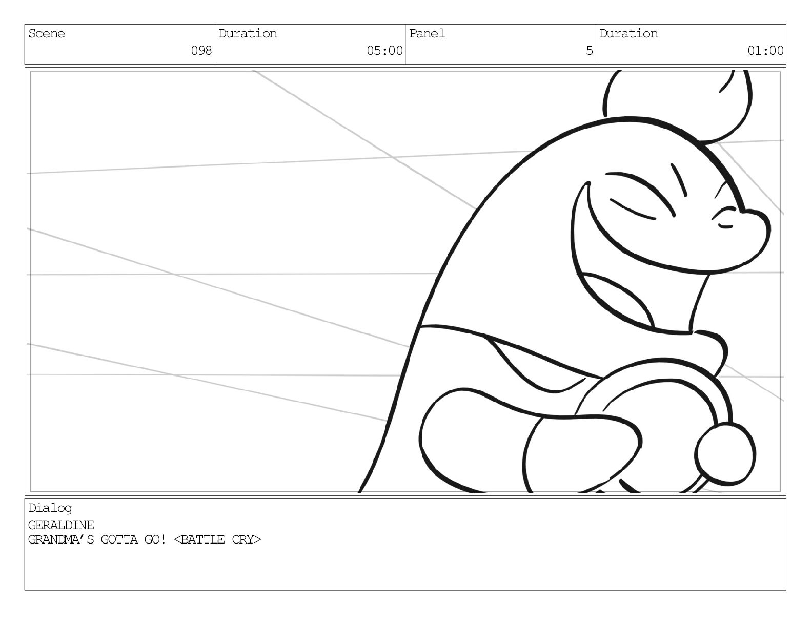 Scene 098 Duration 05:00 Panel 5 Duration 01:00 Dialog GERALDINE