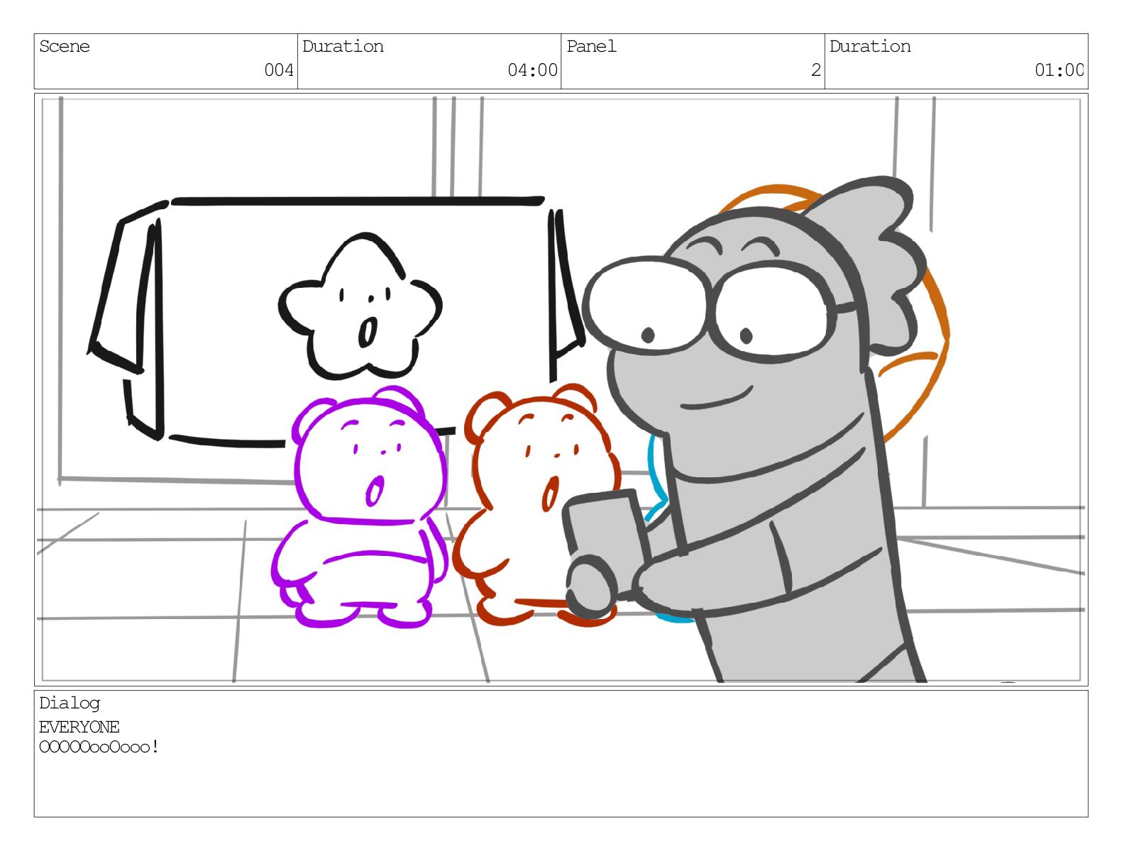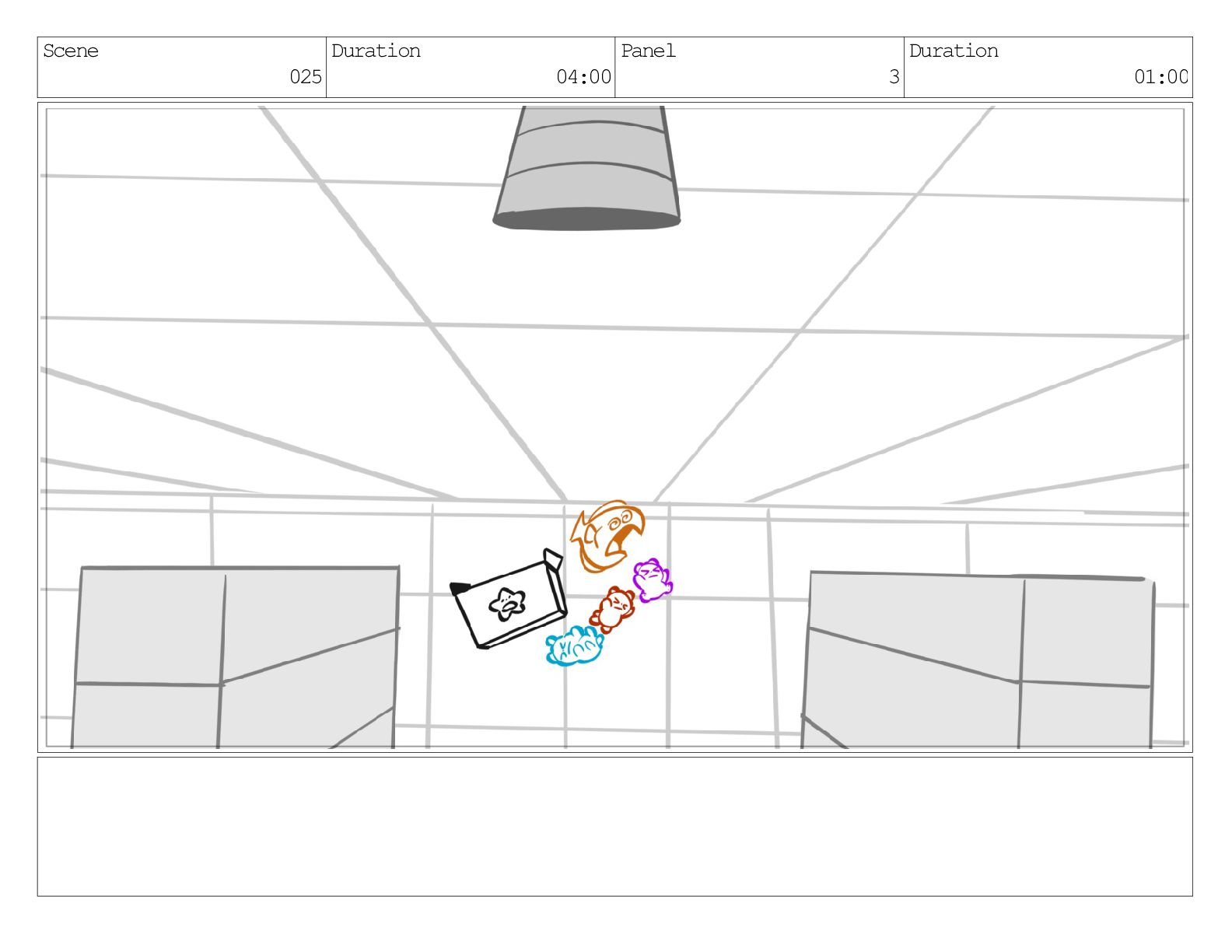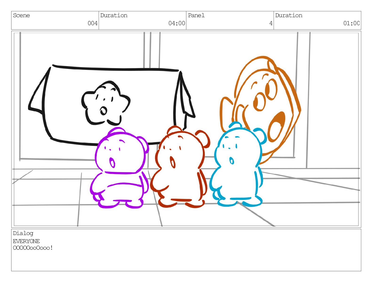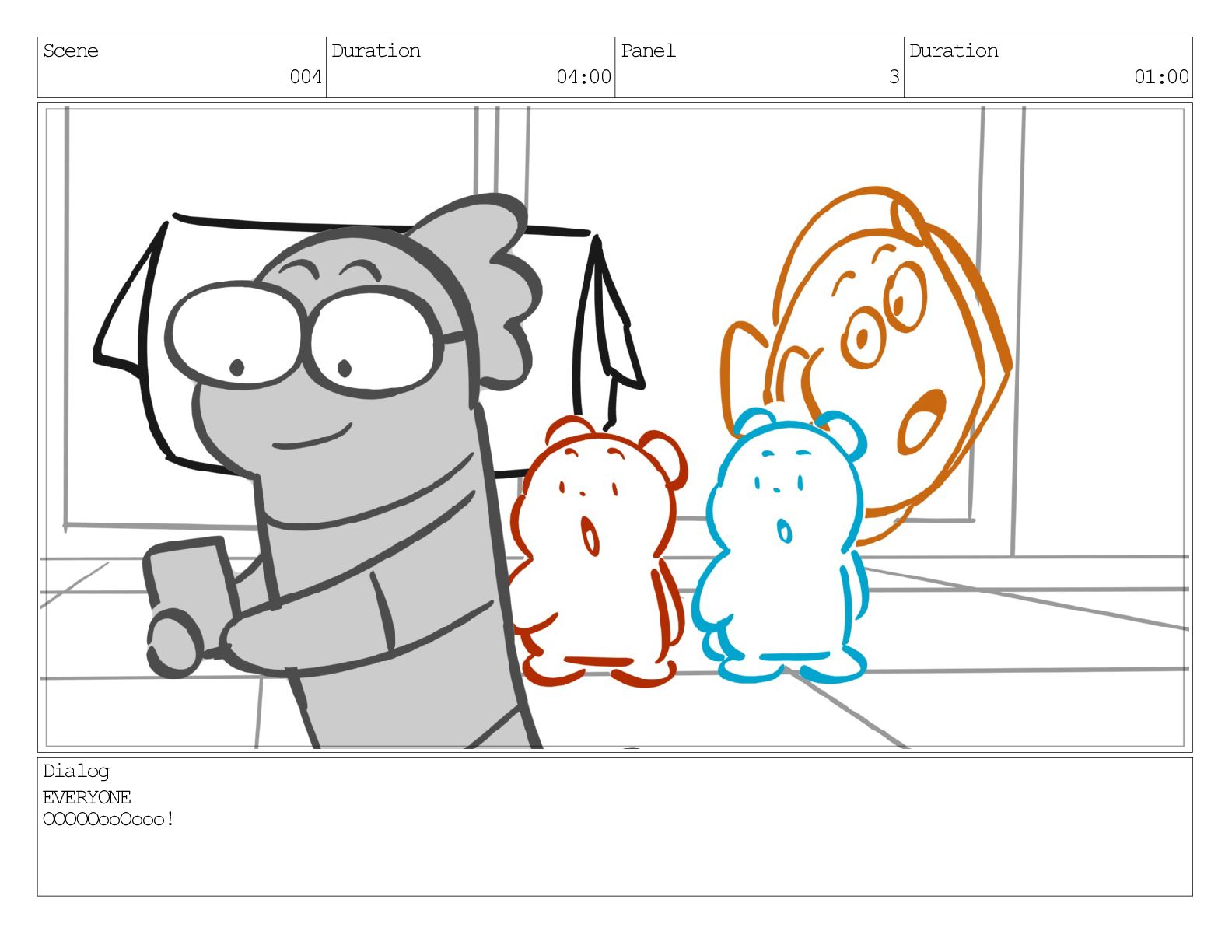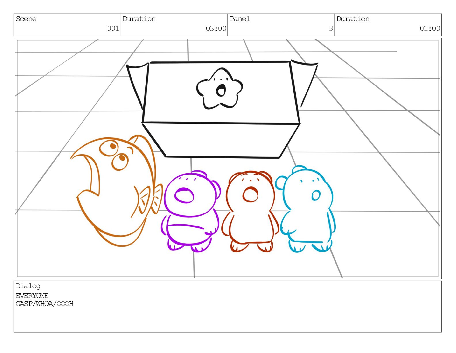 Scene 001 Duration 03:00 Panel 3 Duration 01:00 Dialog EVERYONE